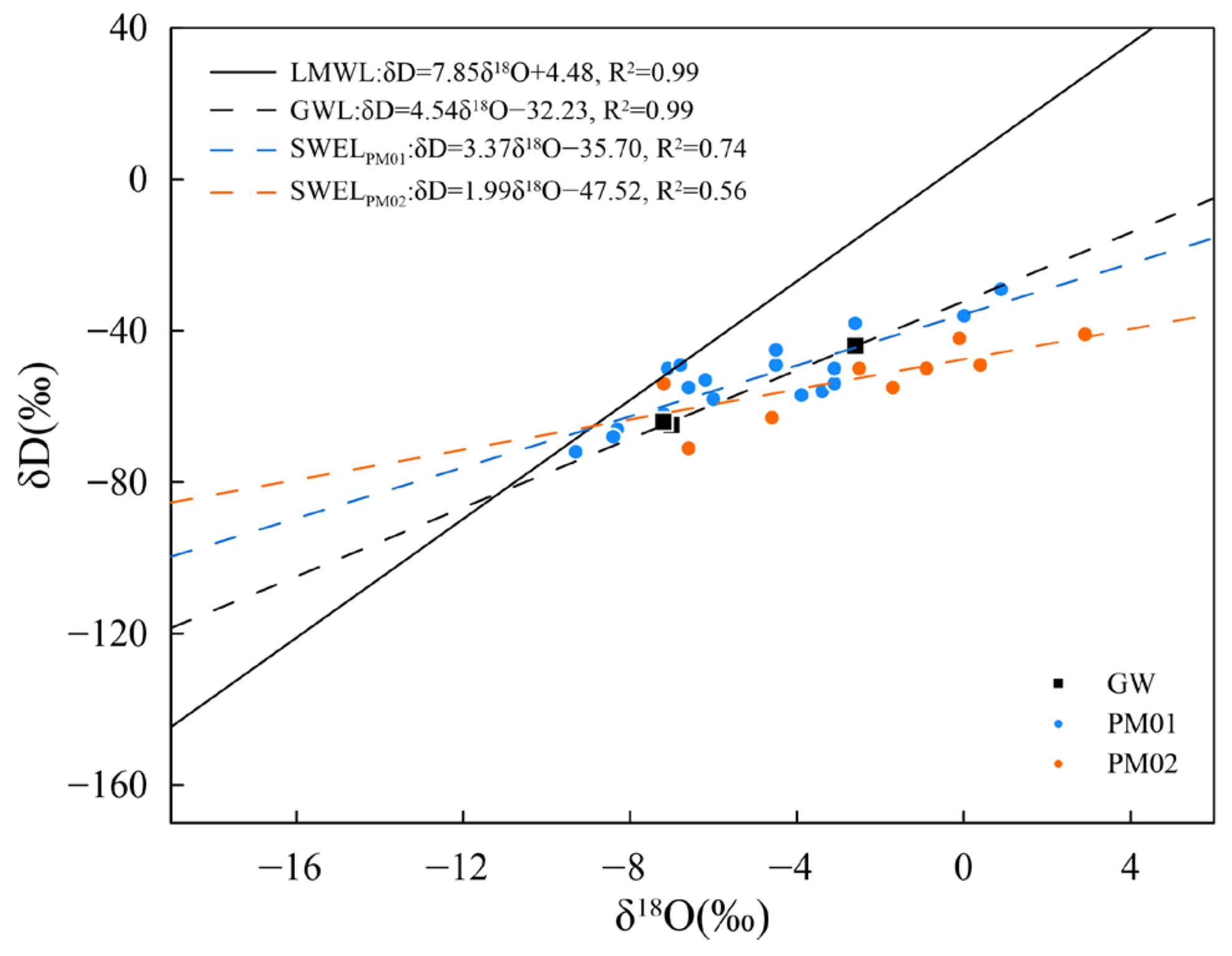 3.2. Characteristics of Hydrogen and Oxygen Isotopes