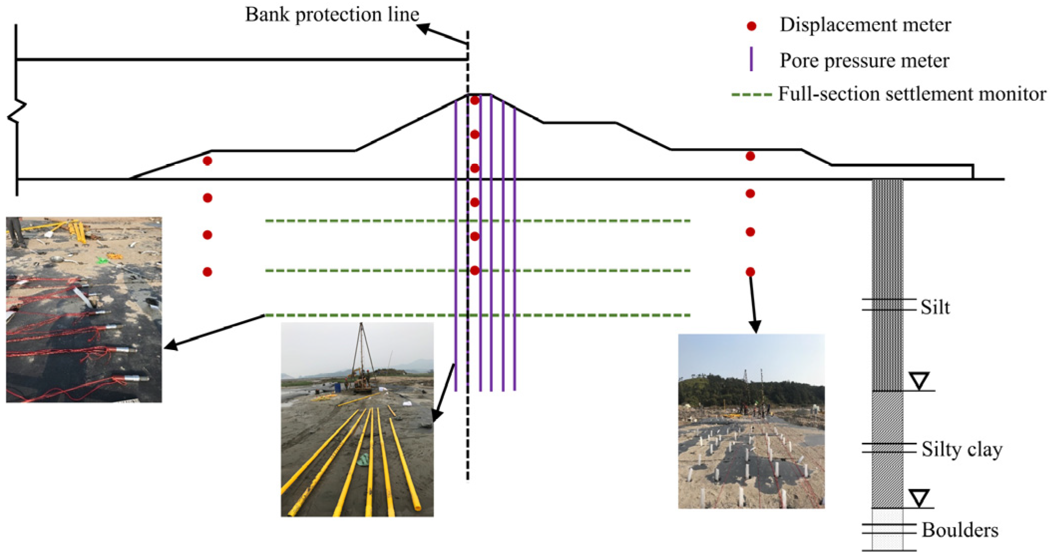- Yang, S.P.; Yang, A.W.; Xu, A.J. Vacuum preloading reinforcement of soft dredger soil by modified fiber drainage plate. Rock Soil Mech. 2025, 46, 789–797. (In Chinese) [Google Scholar]