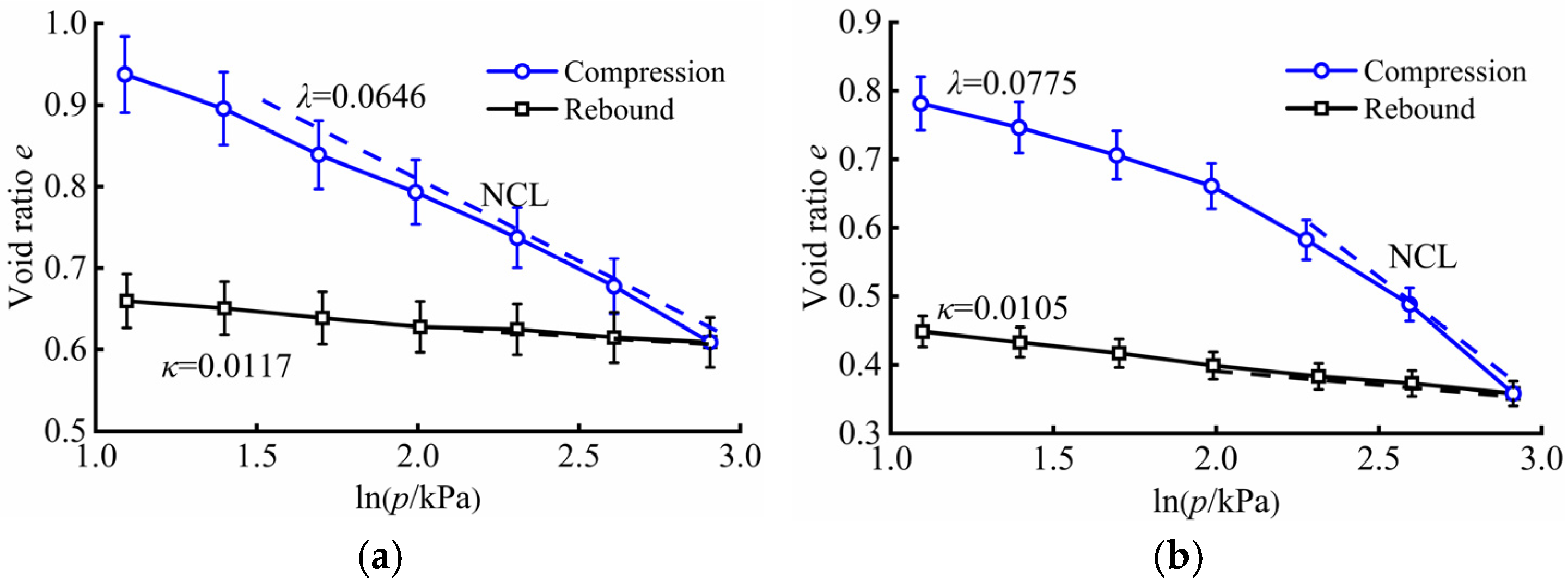 - Zeng, L.L.; Cai, Y.Q.; Cui, Y.J.; Hong, Z.S. Hydraulic conductivity of reconstituted clays based on intrinsic compression. Géotechnique 2020, 70, 268–275. [Google Scholar] [CrossRef]