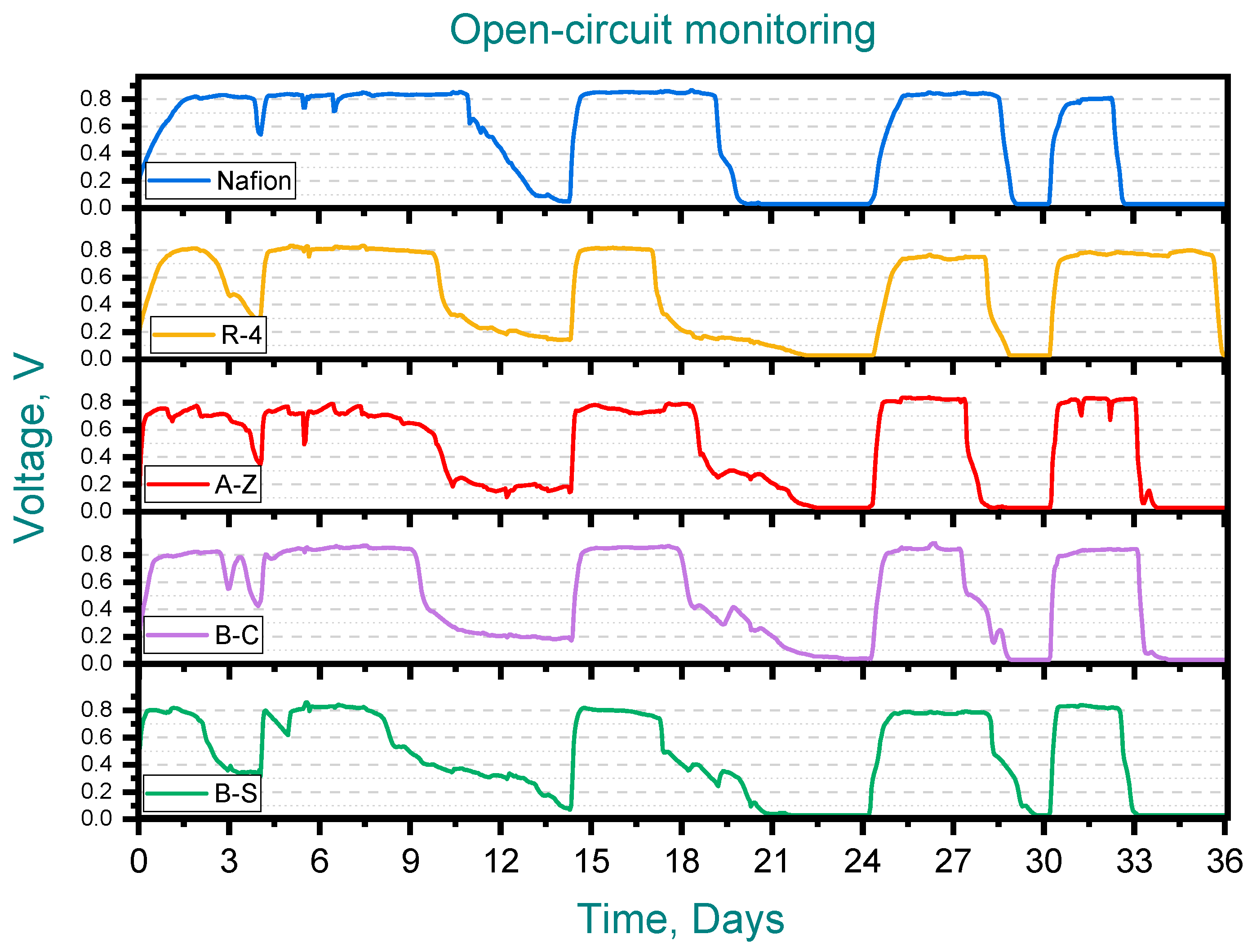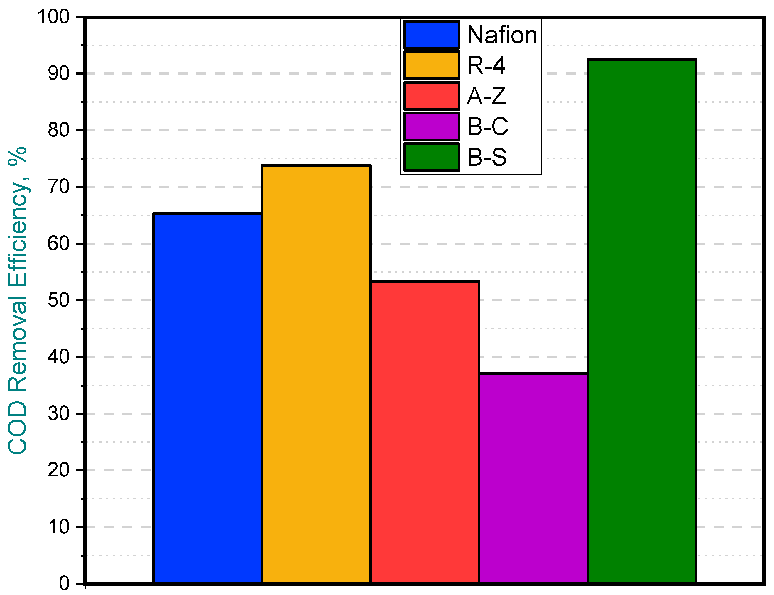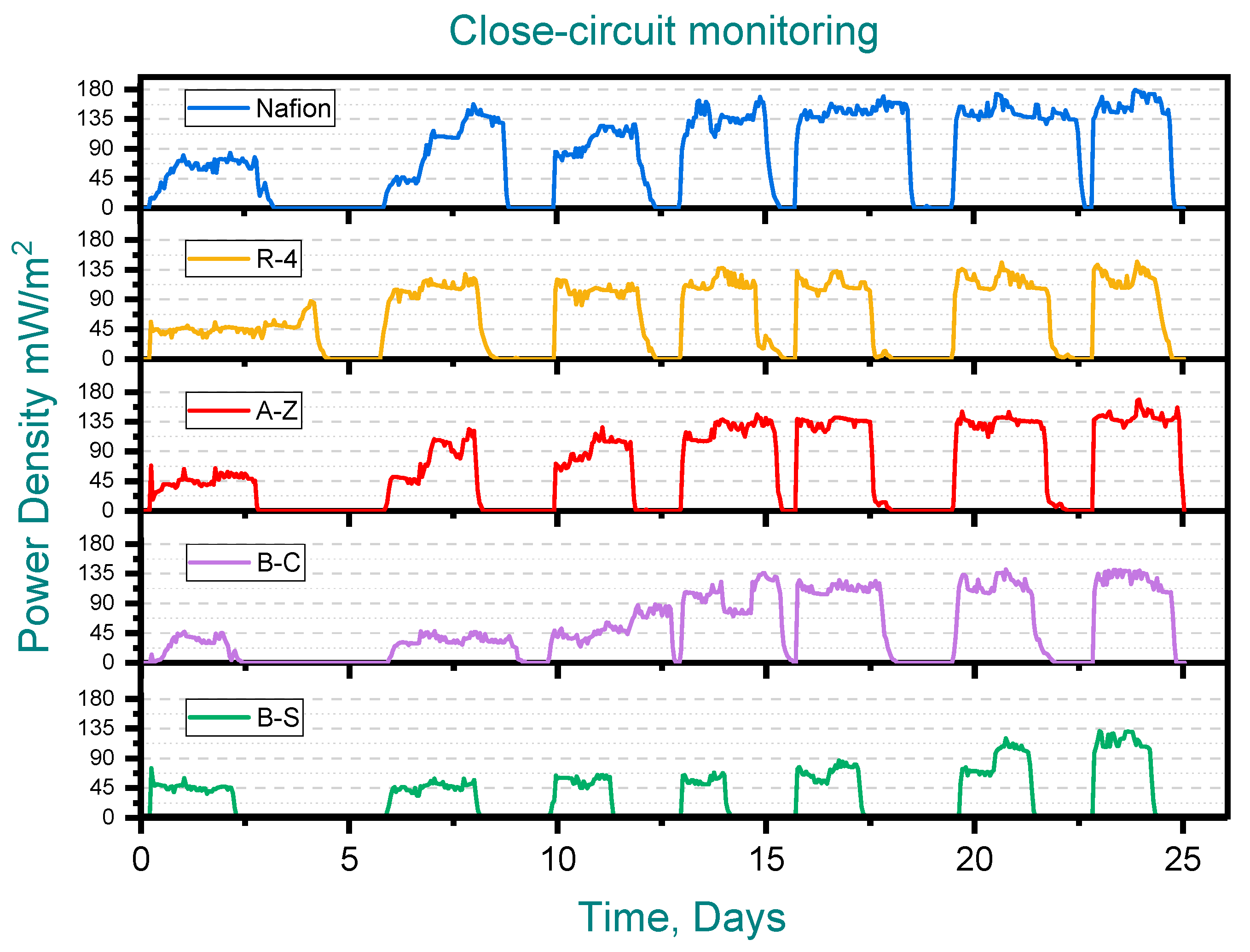 - Sharma, A.; Đelević, L.; Herkendell, K. Next-Generation Proton-Exchange Membranes in Microbial Fuel Cells: Overcoming Nafion’s Limitations. Energy Technol. 2024, 12, 2301346. [Google Scholar] [CrossRef]