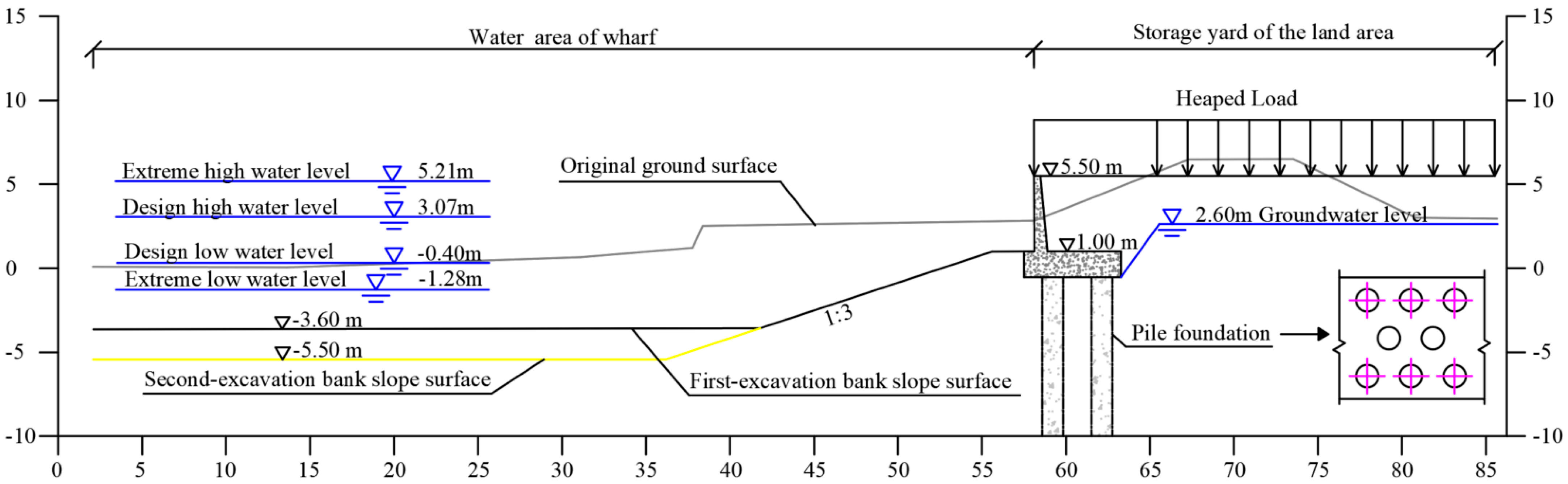 2.3. Construction Scheme of the Wharf and Working Conditions