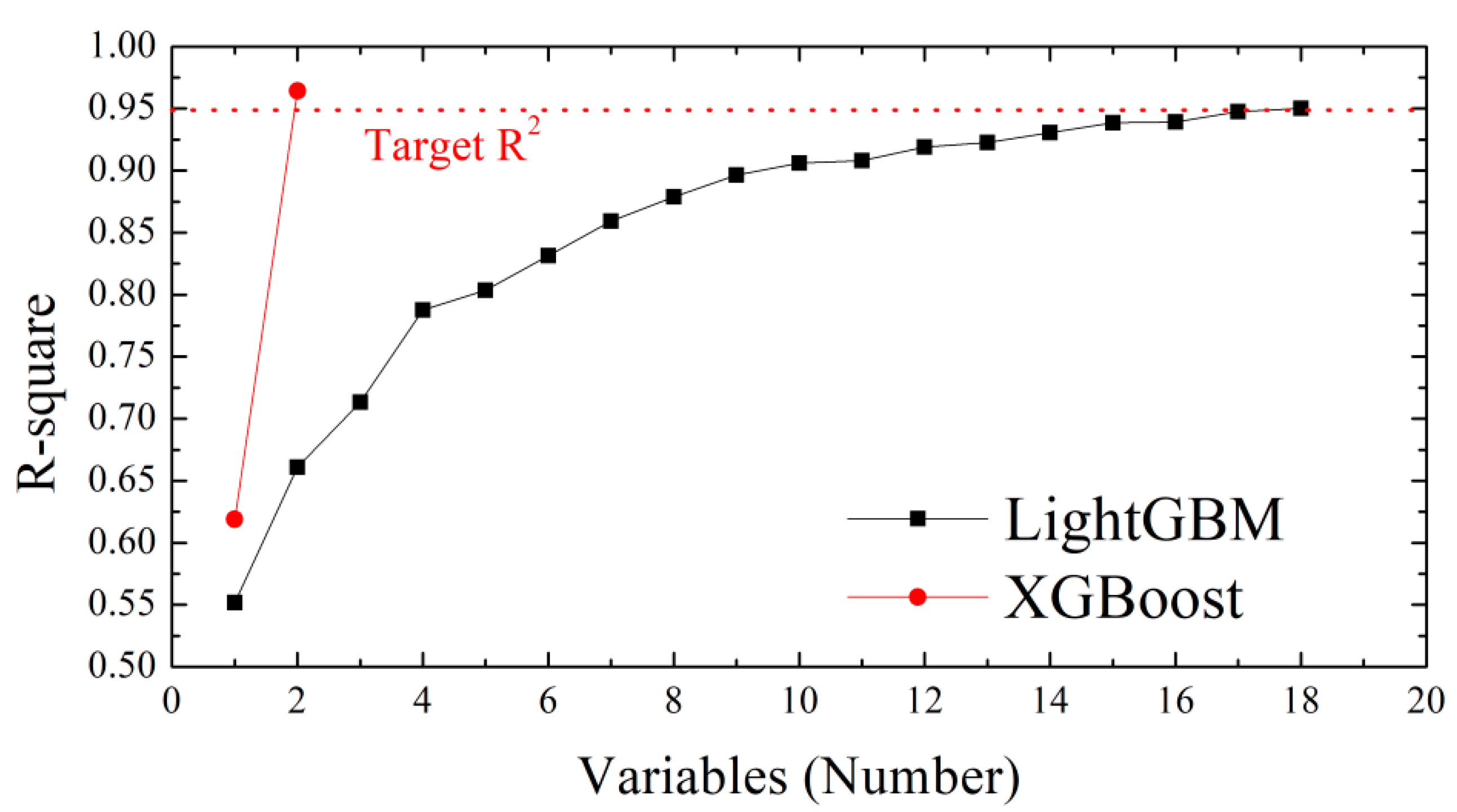 2 ≥ 0.95 under cross-validation were advanced to the final test. To avoid high dimensional inputs and unnecessary computation, the method performs feature selection to retain a compact set of informative wavelengths. The design goals are as follows: (i) minimize the number of predictor variables so the model remains efficient for future processing, and (ii) ensure predictive reliability with a target R