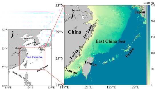 The East China Sea is bordered by the Yellow Sea to the north, the Ryukyu Islands and the Pacific Ocean to the east, the Taiwan Strait to the south, and the Chinese mainland to the west. Covering an area exceeding 770,000 square kilometers, its geographic coordinates extend from 21°54.0′ to 33°11.1′ north latitude and from 117°08.9′ to 131°00.0′ east longitude. It is a marginal sea within the northwest Pacific Ocean, in the eastern part of the Eurasian continent (see Figure 1). The region is distinguished by a multitude of river mouths, bays, and extensive shallow continental shelves, as well as a diverse array of marine ecosystems that are rich in biological resources. These features are further compounded by its transition through tropical, subtropical, and temperate zones, thus exhibiting a pronounced biodiversity gradient. The sea plays a crucial role in the long-term socioeconomic development of China’s coastal regions. It is also among the most vulnerable areas to climate change due to its location within the East Asian monsoon zone, where it is significantly affected by variations in the East Asian monsoon system, including the West Pacific subtropical high-pressure system and the East Asian winter and summer monsoons. Furthermore, the Kuroshio Current—one of the world’s largest subtropical boundary currents—exerts a significant influence, with fluctuations in its strength impacting the region [23]. Over recent decades, the marine environment of the East China Sea has undergone notable changes, largely due to its unique geographic characteristics, climatic conditions, and intense human activity. These alterations include observable warming, frequent marine heatwaves, eutrophication, harmful algal blooms, and declines in biodiversity and marine resources [24]. The prevalence and intensity of marine heatwaves have exhibited a marked increase in recent years, a phenomenon that has been predominantly attributed to global warming. This environmental change has had significant ramifications for various aspects of coastal ecosystems, including fisheries, marine habitats, and socioeconomic activities in these regions.