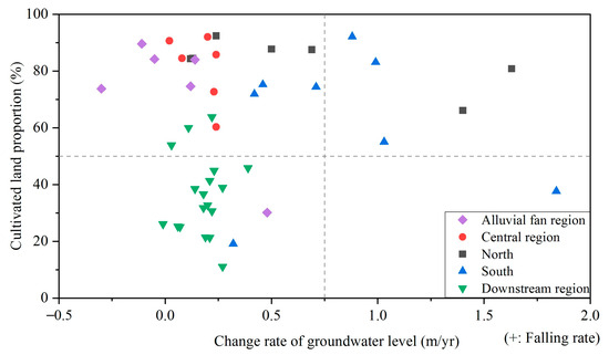Relationship between groundwater decline rate and cultivated land proportion.