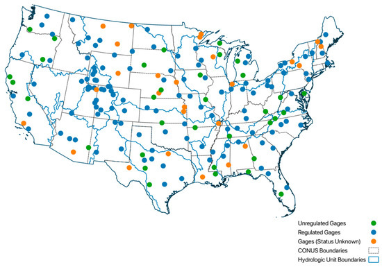 - Falcone, J.A. GAGES-II: Geospatial Attributes of Gages for Evaluating Streamflow; U.S. Geological Survey: Reston, VA, USA, 2011. [Google Scholar] [CrossRef]