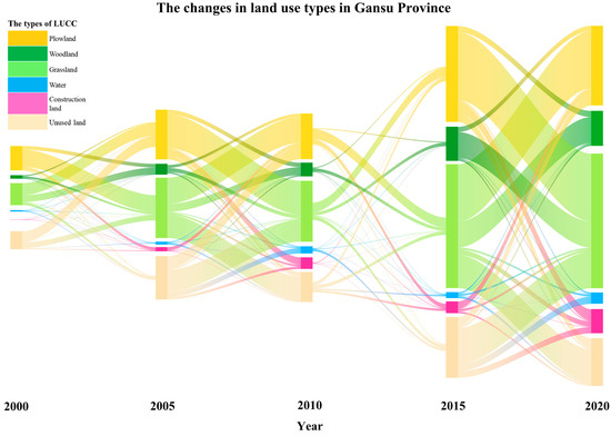 Land use conversion in Gansu Province from 2000 to 2020.