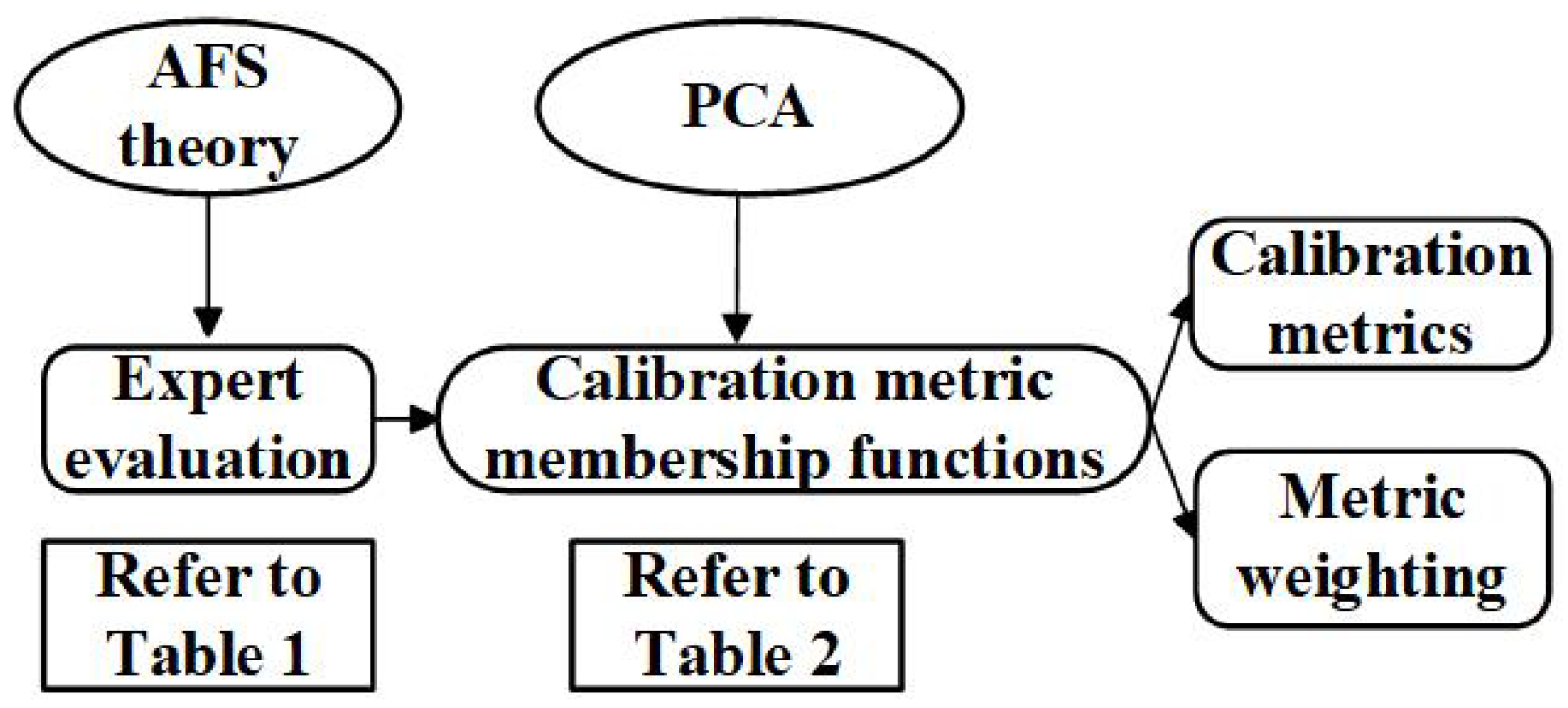 (4) Calibration Metric System Construction: From the  candidate metrics, remove  metrics by sorting their mean membership degrees in ascending order. Use the remaining K metrics to establish the metric system (where ). The rationale for removing metrics with lower mean membership degrees is to prioritize metrics with higher expert evaluation consensus for assessing higher-level metrics.