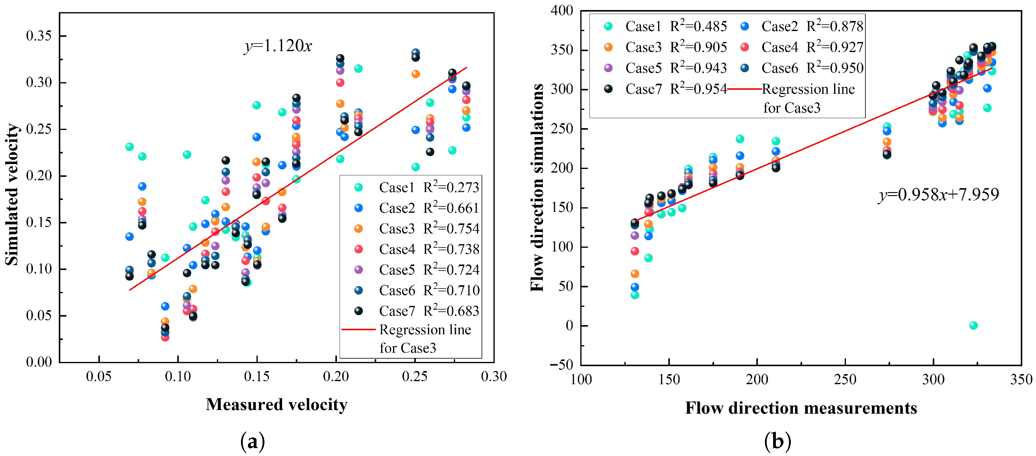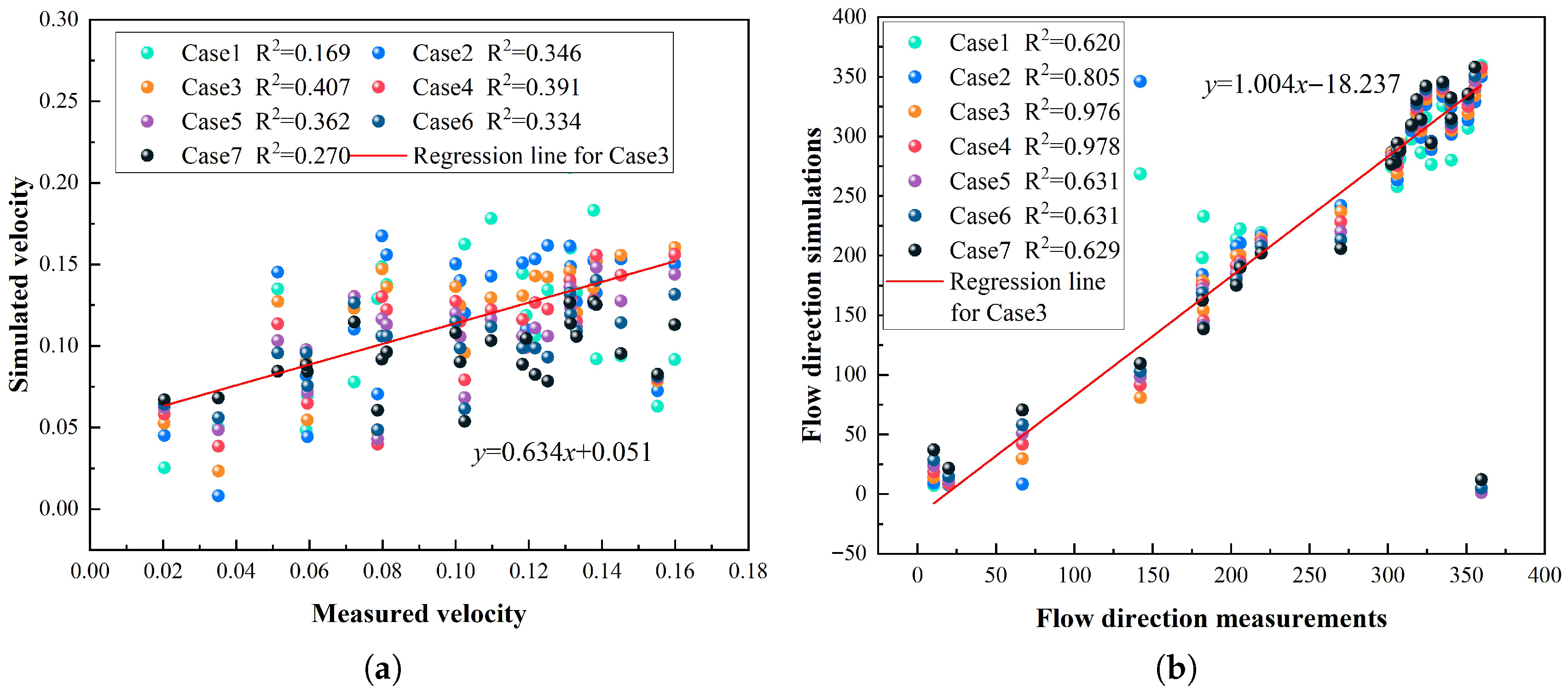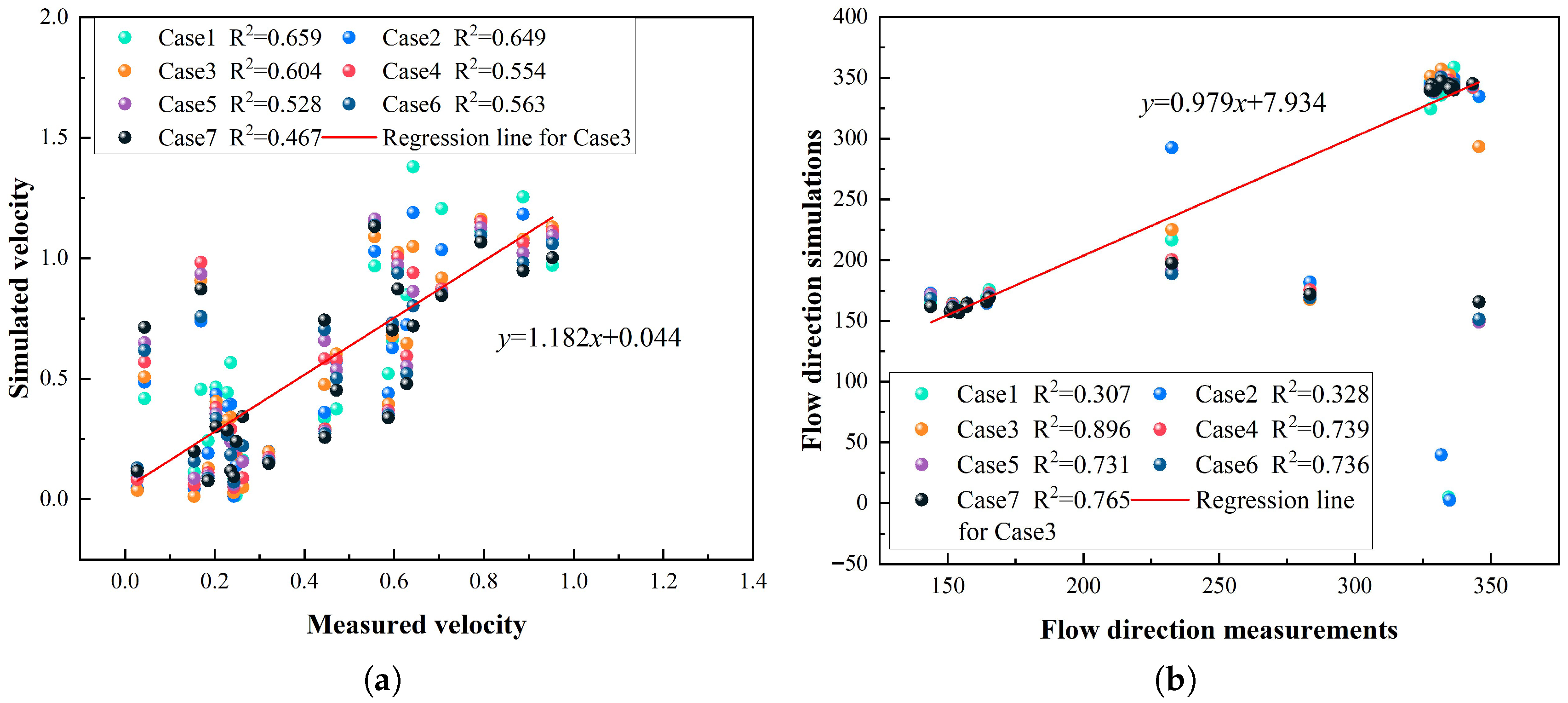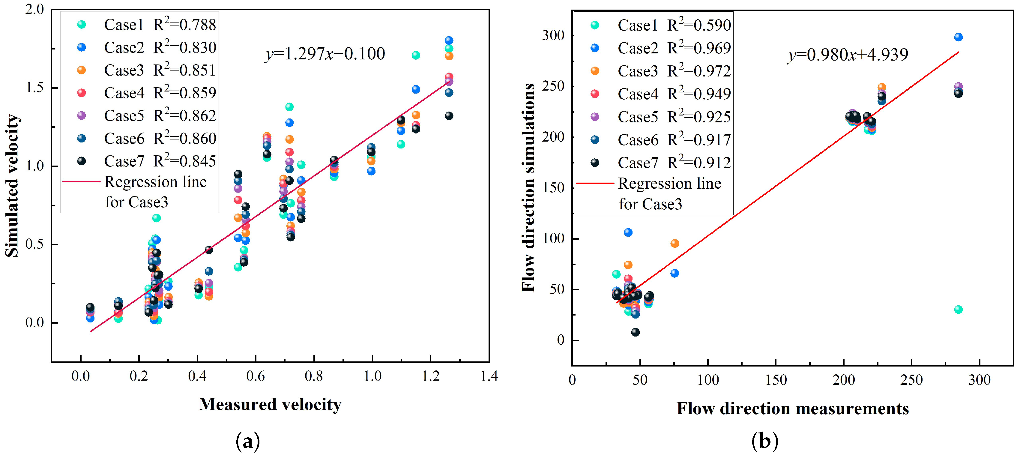 5.3.4. Tidal Current Simulation and Measurement Correlation Analysis