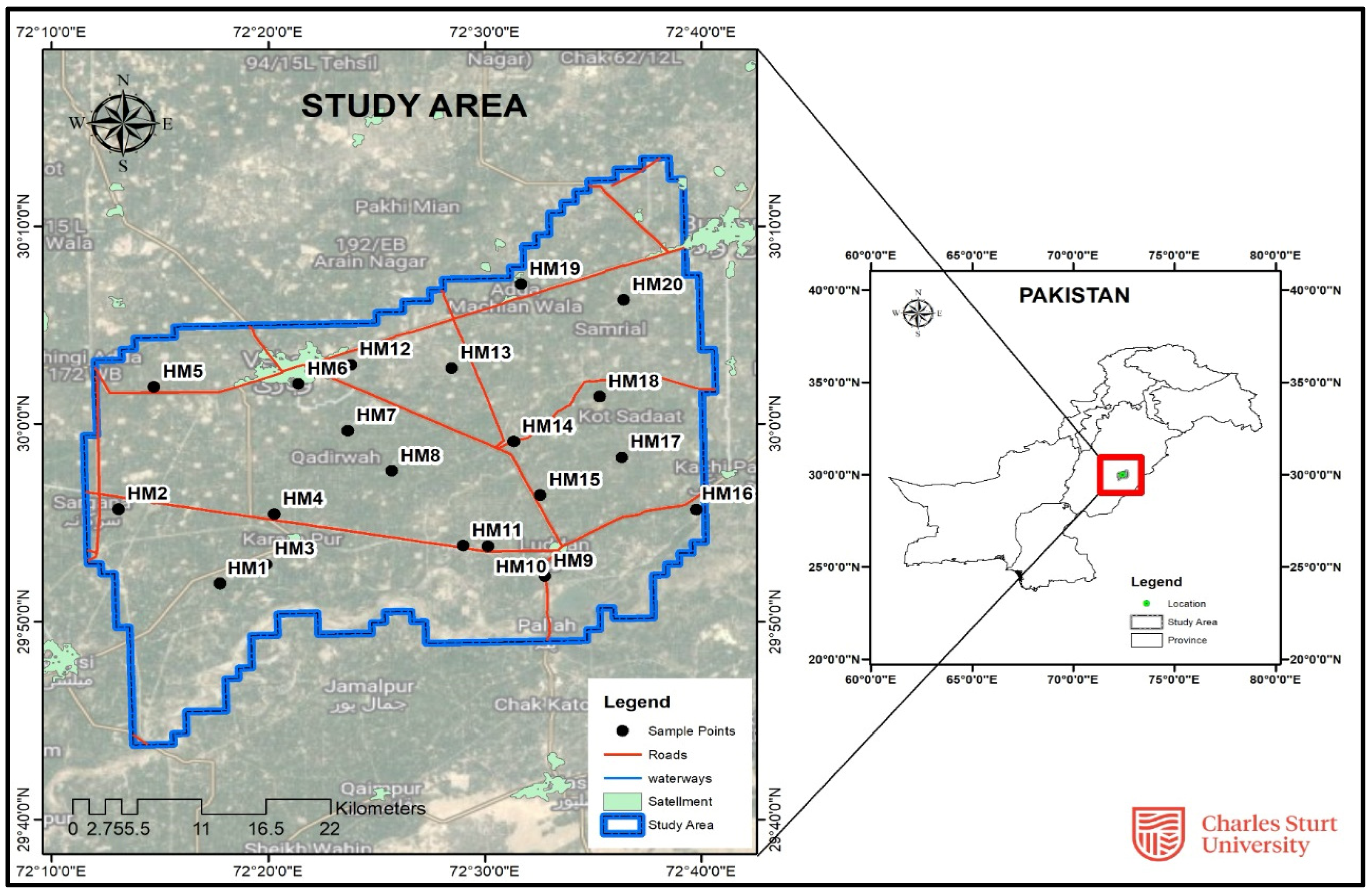 - Khan, K.; Younas, M.; Sharif, H.M.A.; Wang, C.; Yaseen, M.; Cao, X.; Zhou, Y.; Ibrahim, S.M.; Yvette, B.; Lu, Y. Heavy metals contamination, potential pathways and risks along the Indus Drainage System of Pakistan. Sci. Total Environ. 2022, 809, 151994. [Google Scholar] [CrossRef] [PubMed]