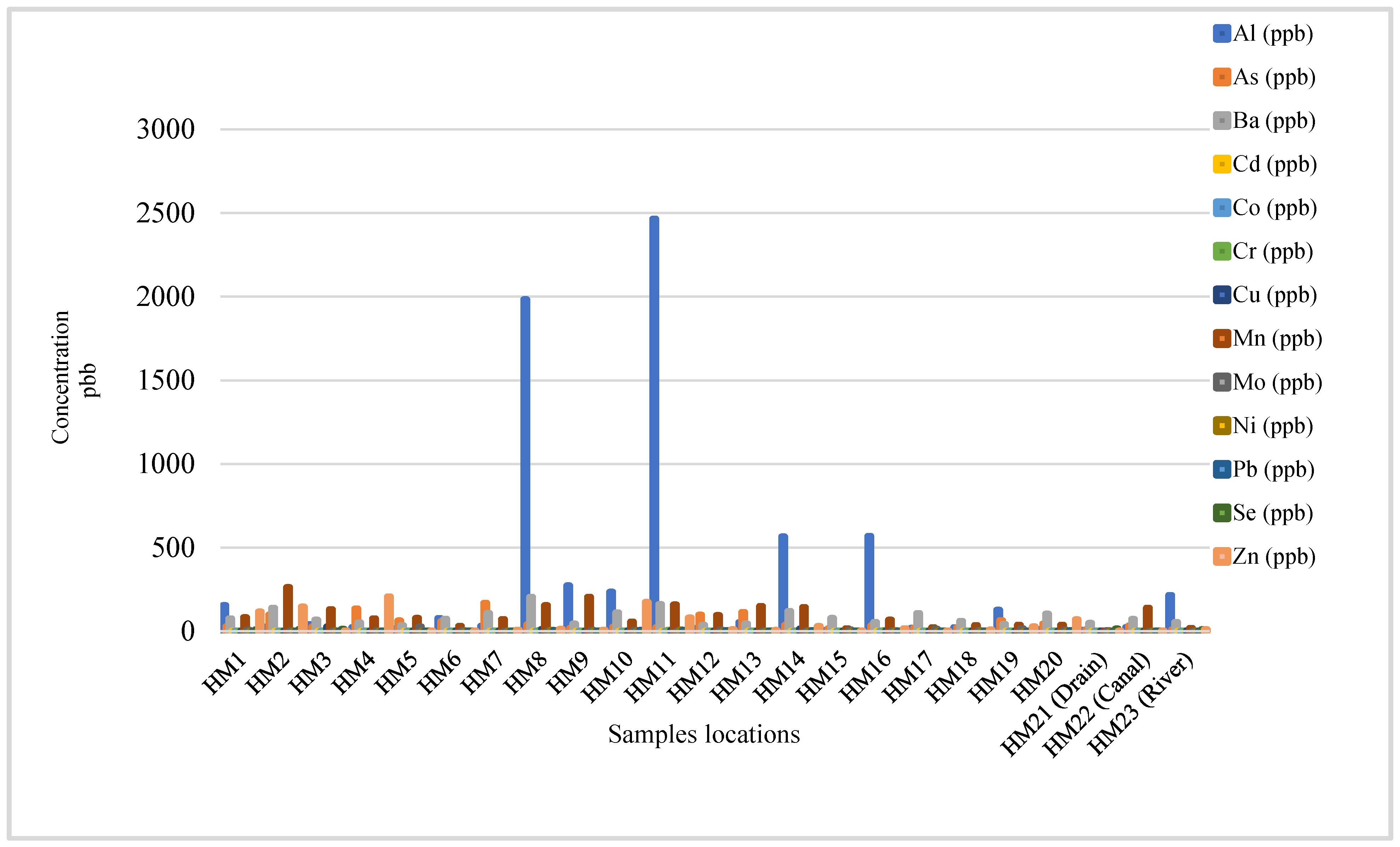 | Al | As | Ba | Cd | Co | Cr | Cu | Mn | Mo | Ni | Pb | Se | Zn | |