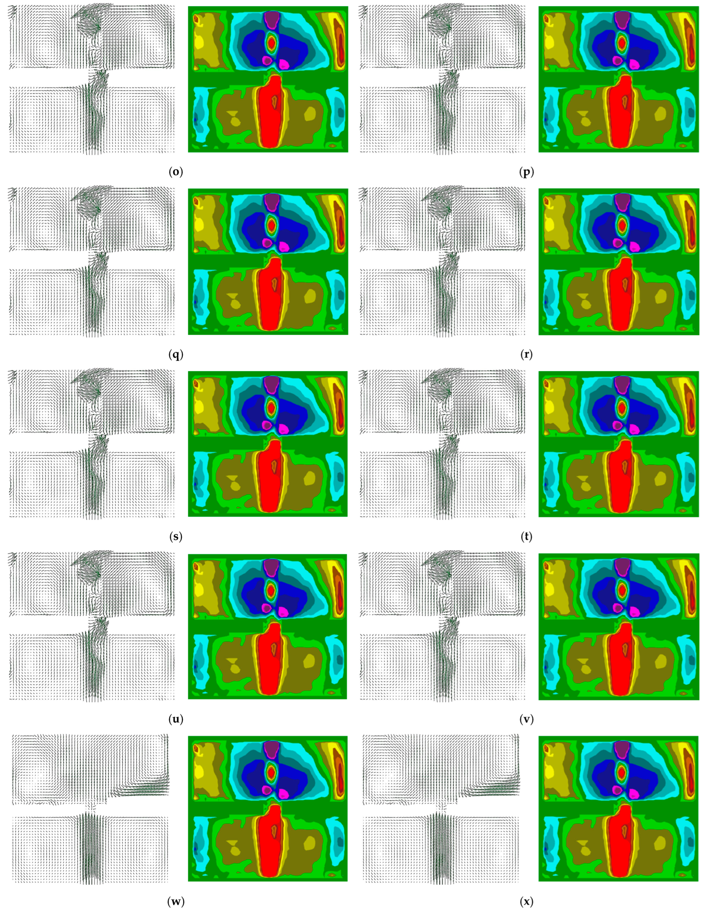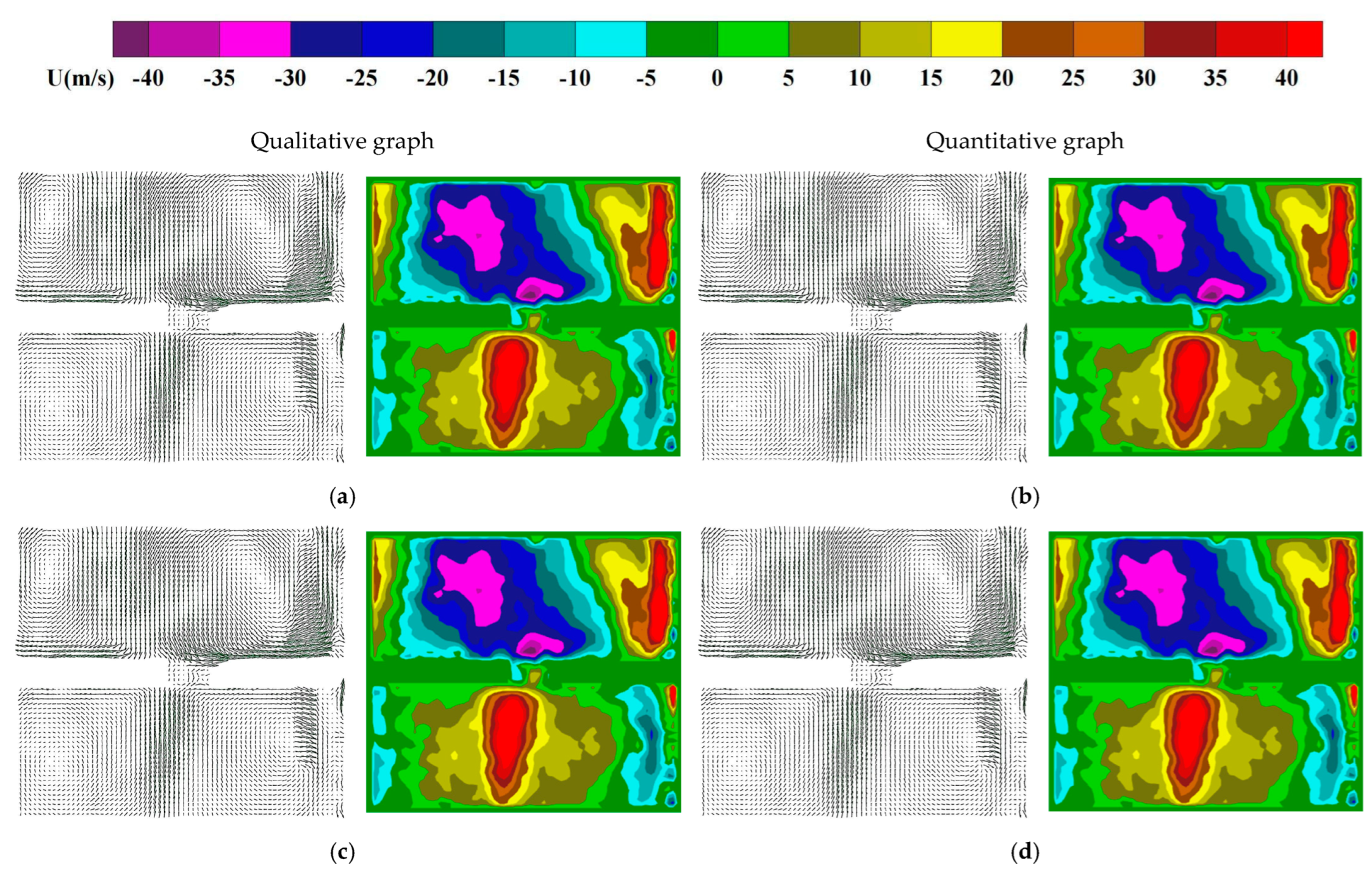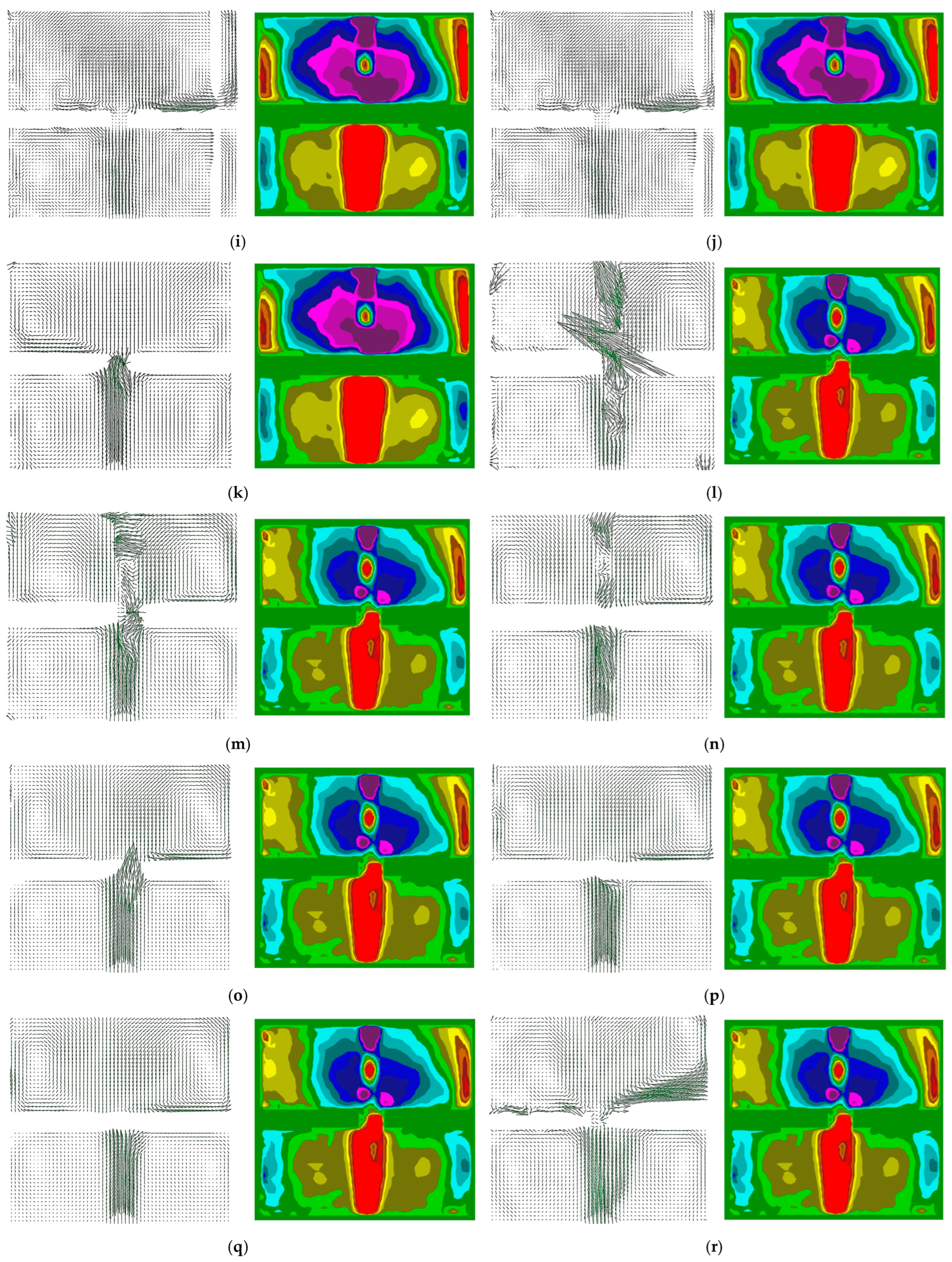 - At constant pressure, an increase in flow rate leads to an expansion in vortex volume and higher energy consumption due to intensified vortex activity. This results in greater pressure loss and reduced overall efficiency. The elevated flow rate also introduces a left–right pressure differential, altering local velocities and destabilizing the flow distribution, which promotes the formation of additional small-scale vortices. Under varying flow rates, the behavior of the standard diaphragm becomes more complex. Vortices become increasingly unstable and prone to breakdown under different pressure conditions, ultimately reducing the system’s dynamic response speed.