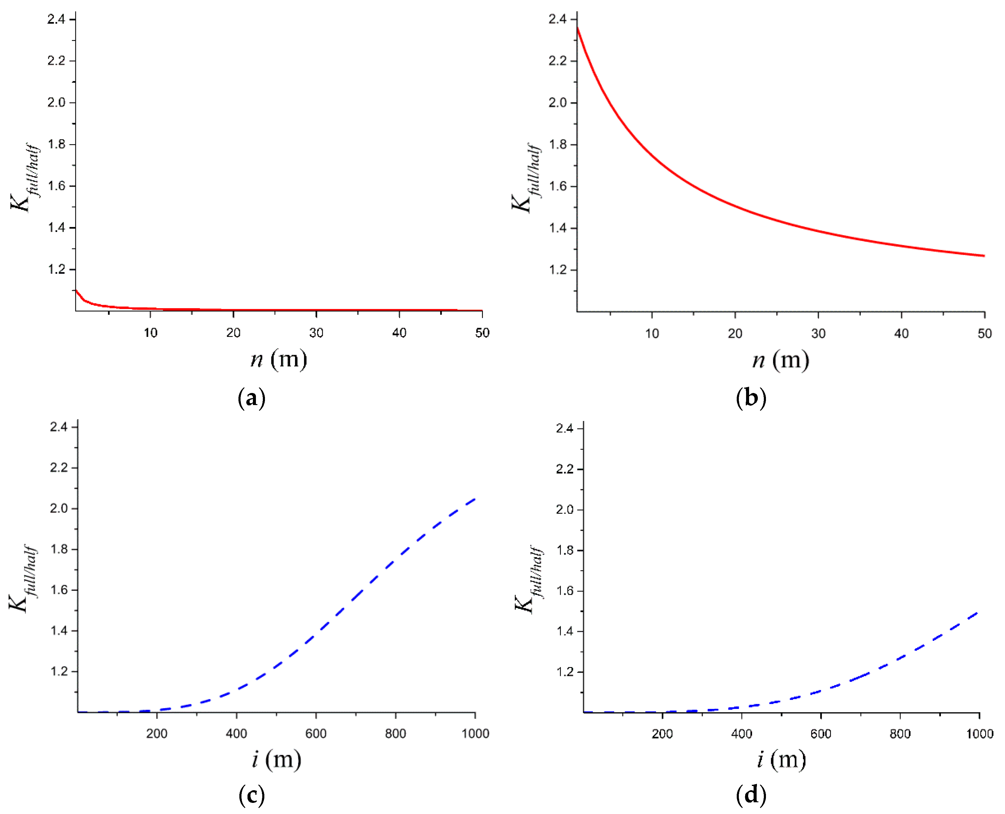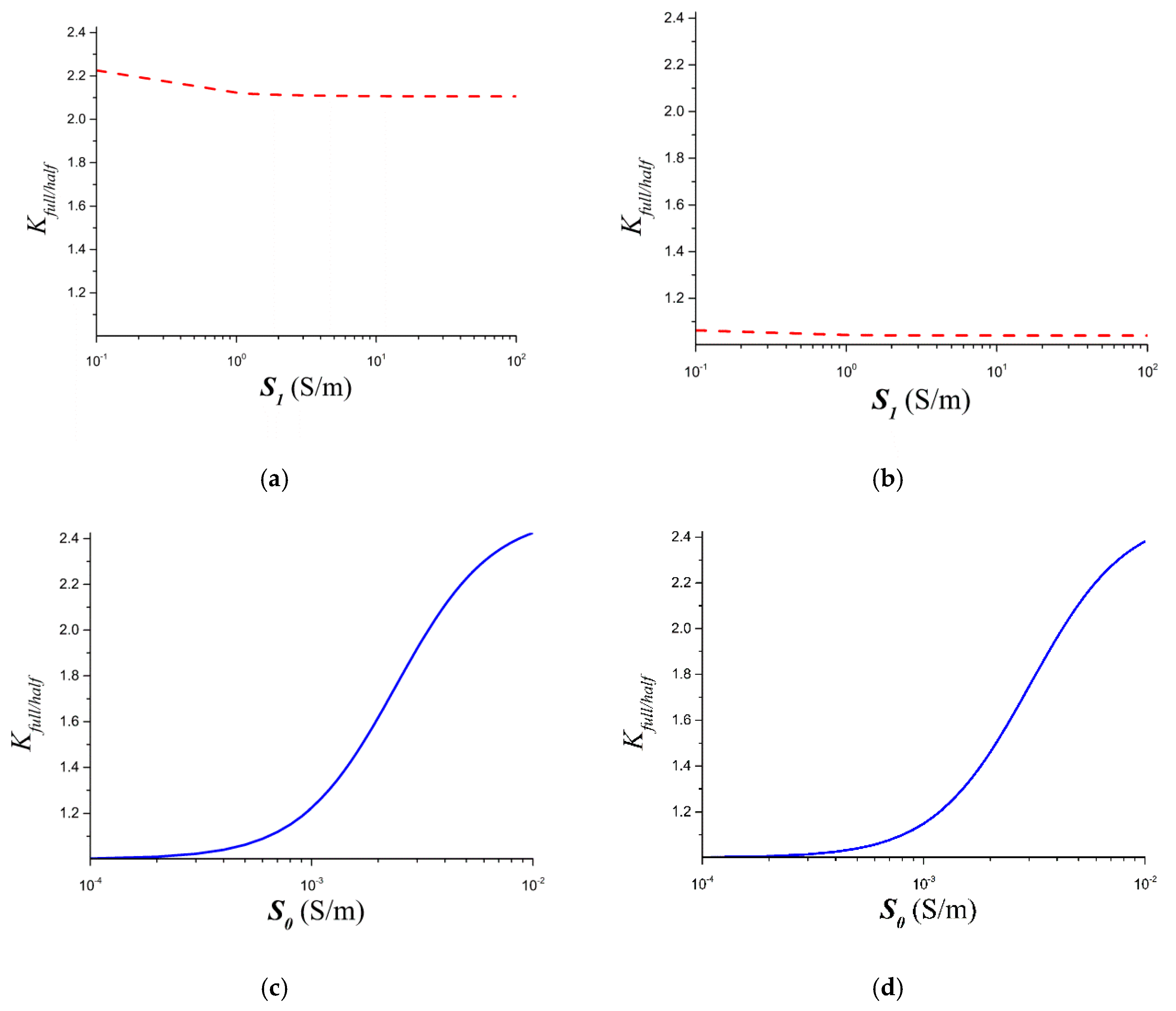 Modern 1D, 2D, or 3D inversion techniques should be employed for detailed modeling when they are available and feasible. However, our analytical results provide quick diagnostic indicators. The analytical approach can serve as a verification tool or a way to gain physical intuition. For instance, it can help identify whether full-space effects are significant enough to warrant a full 3D inversion in a given scenario. If our ratio coefficient predicts a value close to 1.0, one might conclude that a simpler half-space-based interpretation could suffice; if it predicts something near 2.5, a more advanced modeling/inversion would likely be necessary to accurately interpret the data. Practitioners can use these findings to decide when the full-space effect is significant enough to warrant the added complexity of 3D interpretations.