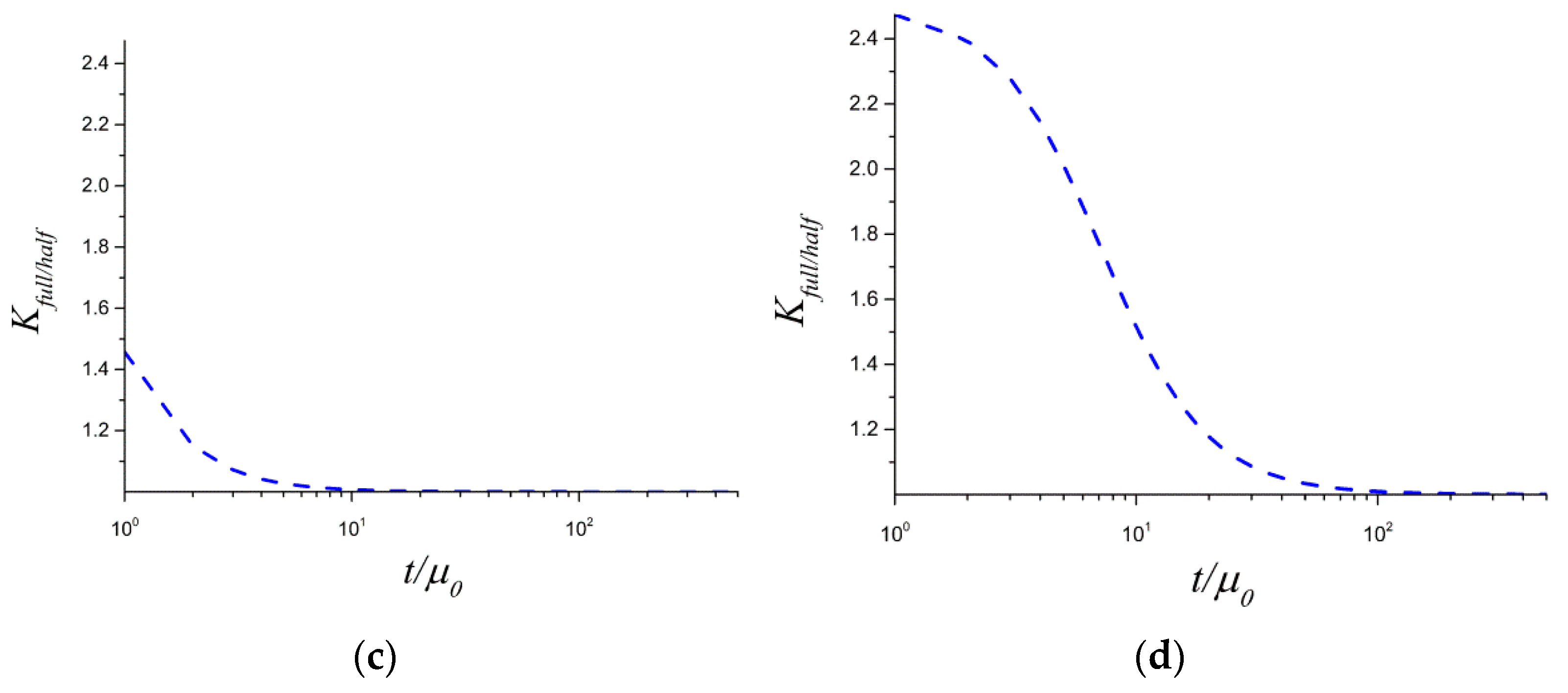 Figure 8c,d further confirm the distinct decreasing trend of the ratio coefficient with increasing time.