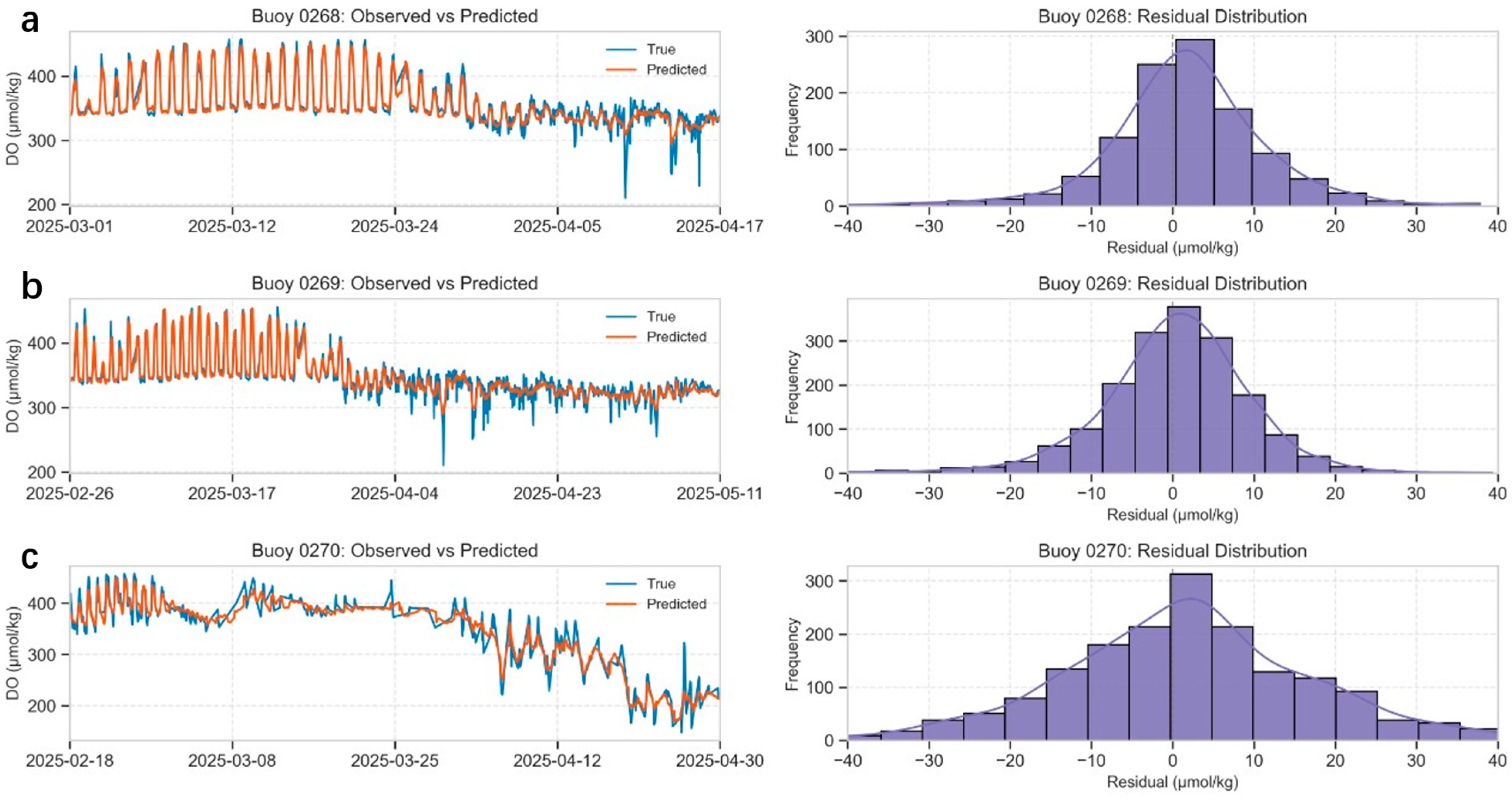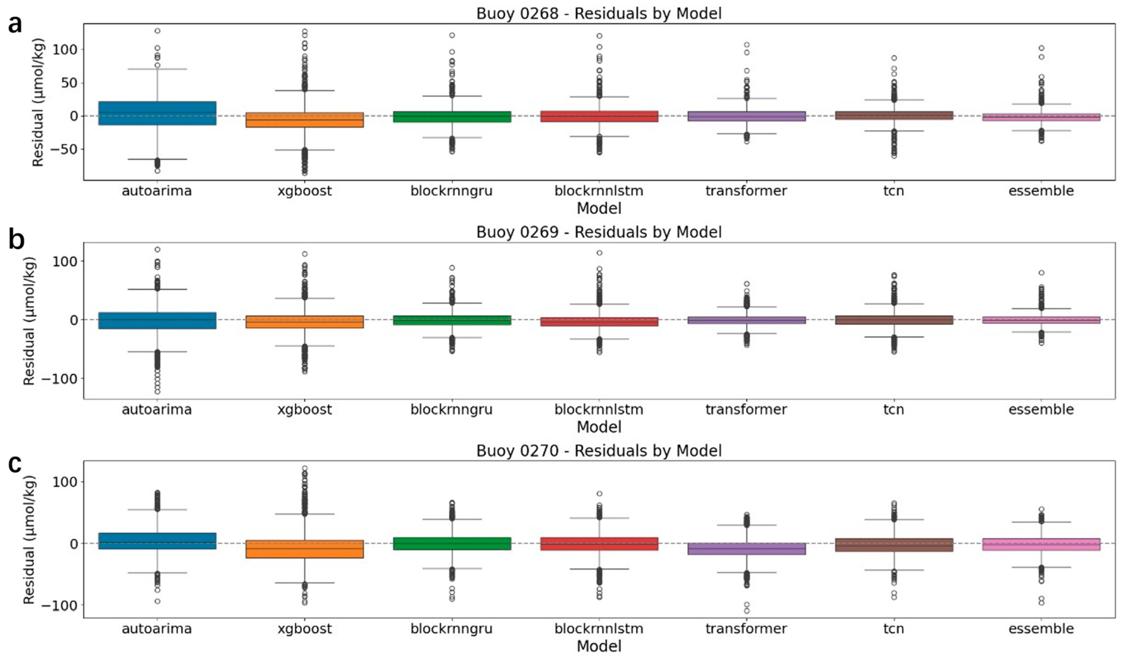 | Buoy ID | Forecast Horizon | MAPE | RMSE (μmol/kg) | R2 |