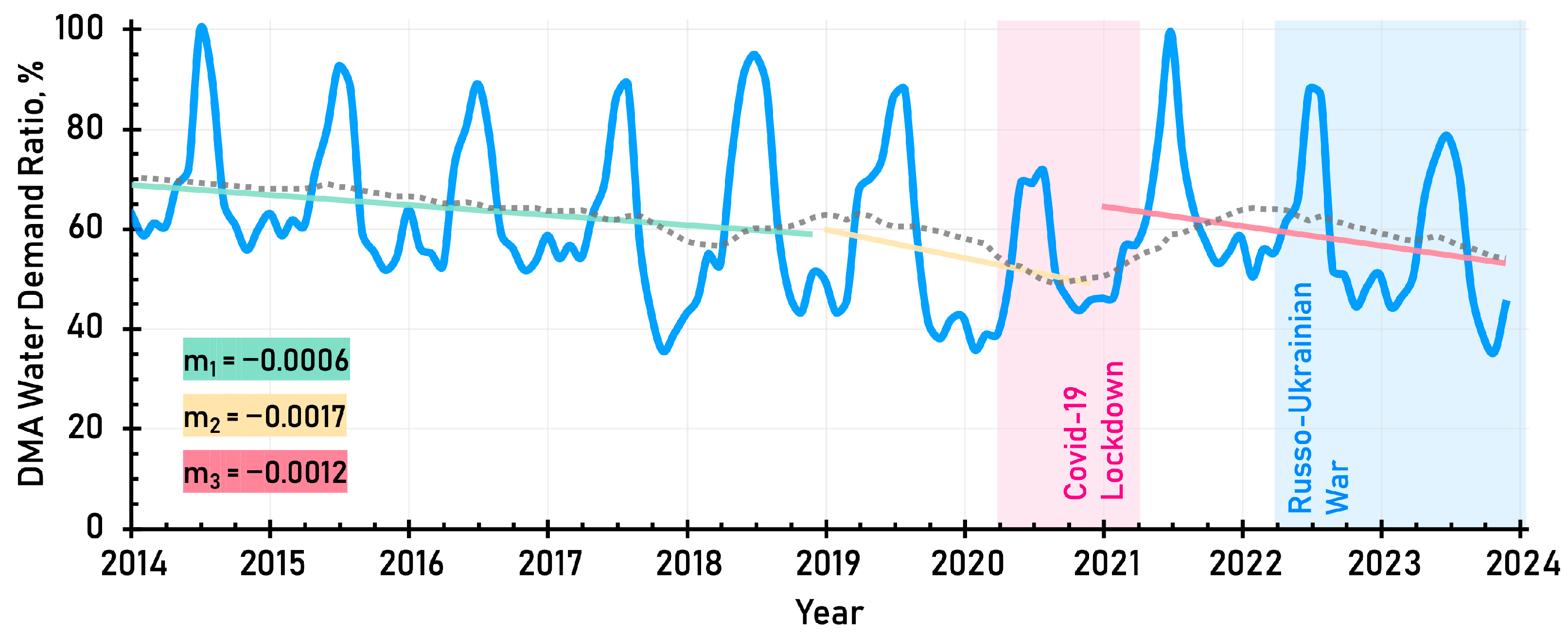 - Vizanko, B.; Kadinski, L.; Ostfeld, A.; Berglund, E.Z. Social Distancing, Water Demand Changes, and Quality of Drinking Water during the COVID-19 Pandemic. Sustain. Cities Soc. 2024, 102, 105210. [Google Scholar] [CrossRef]