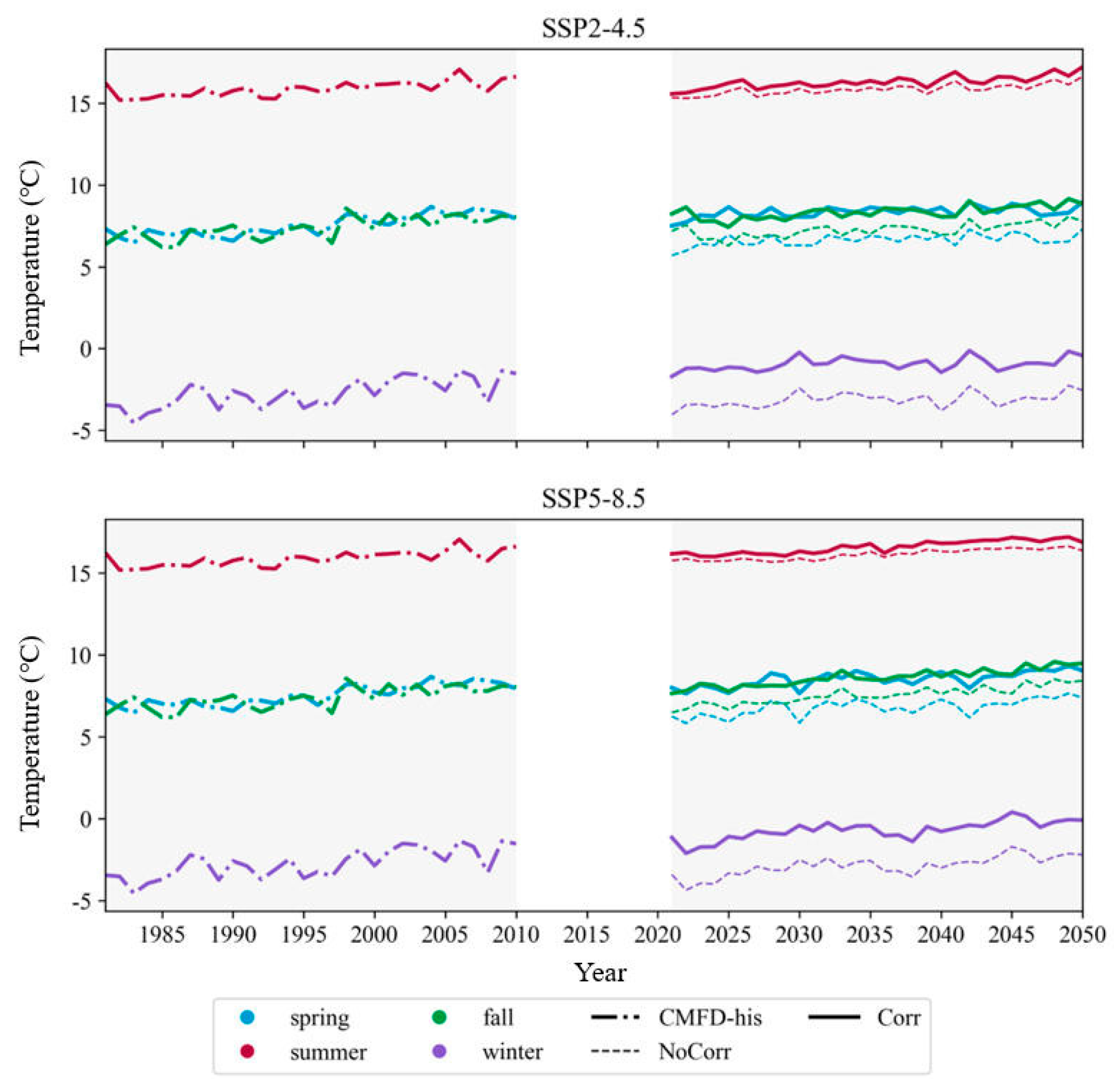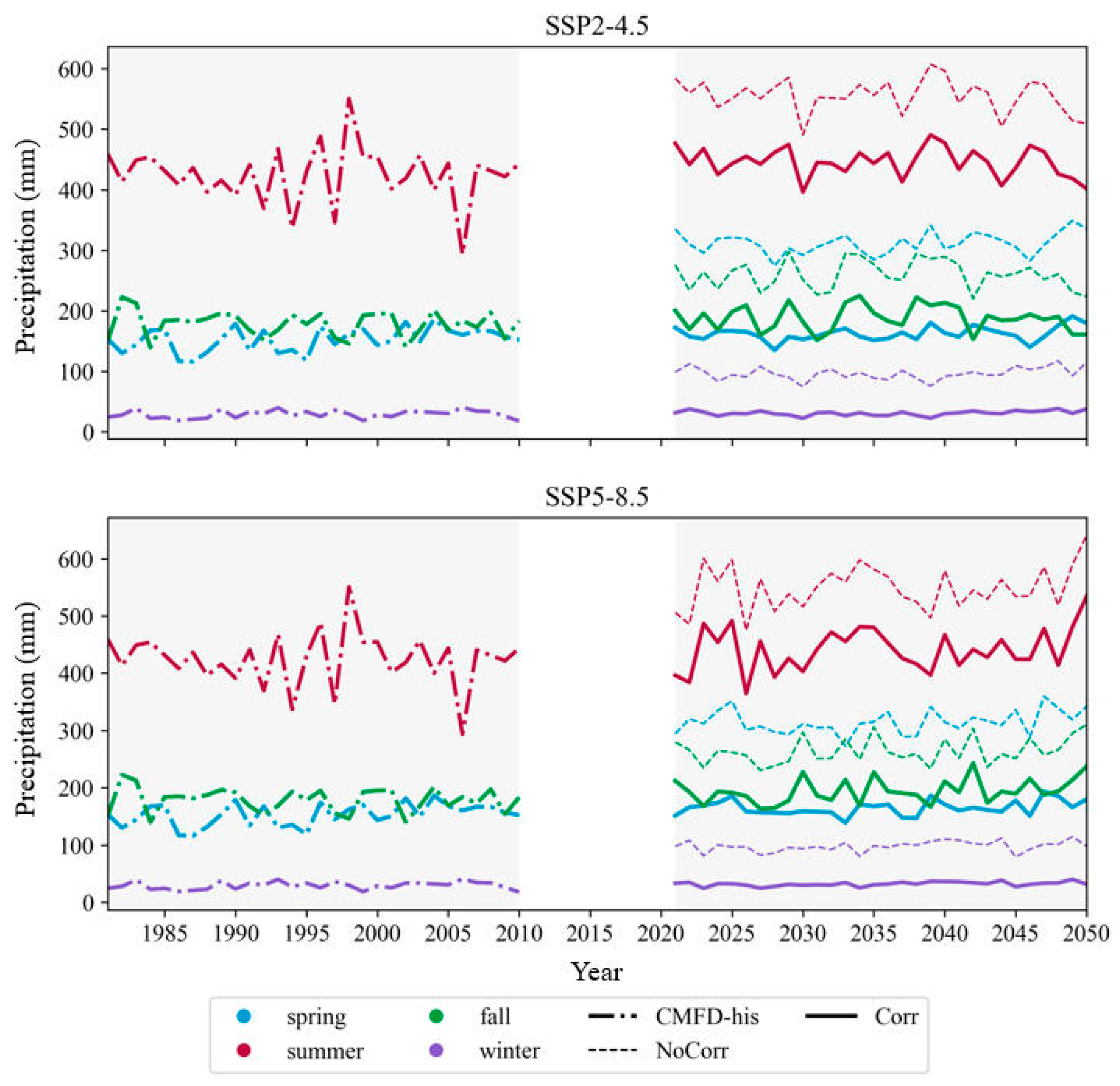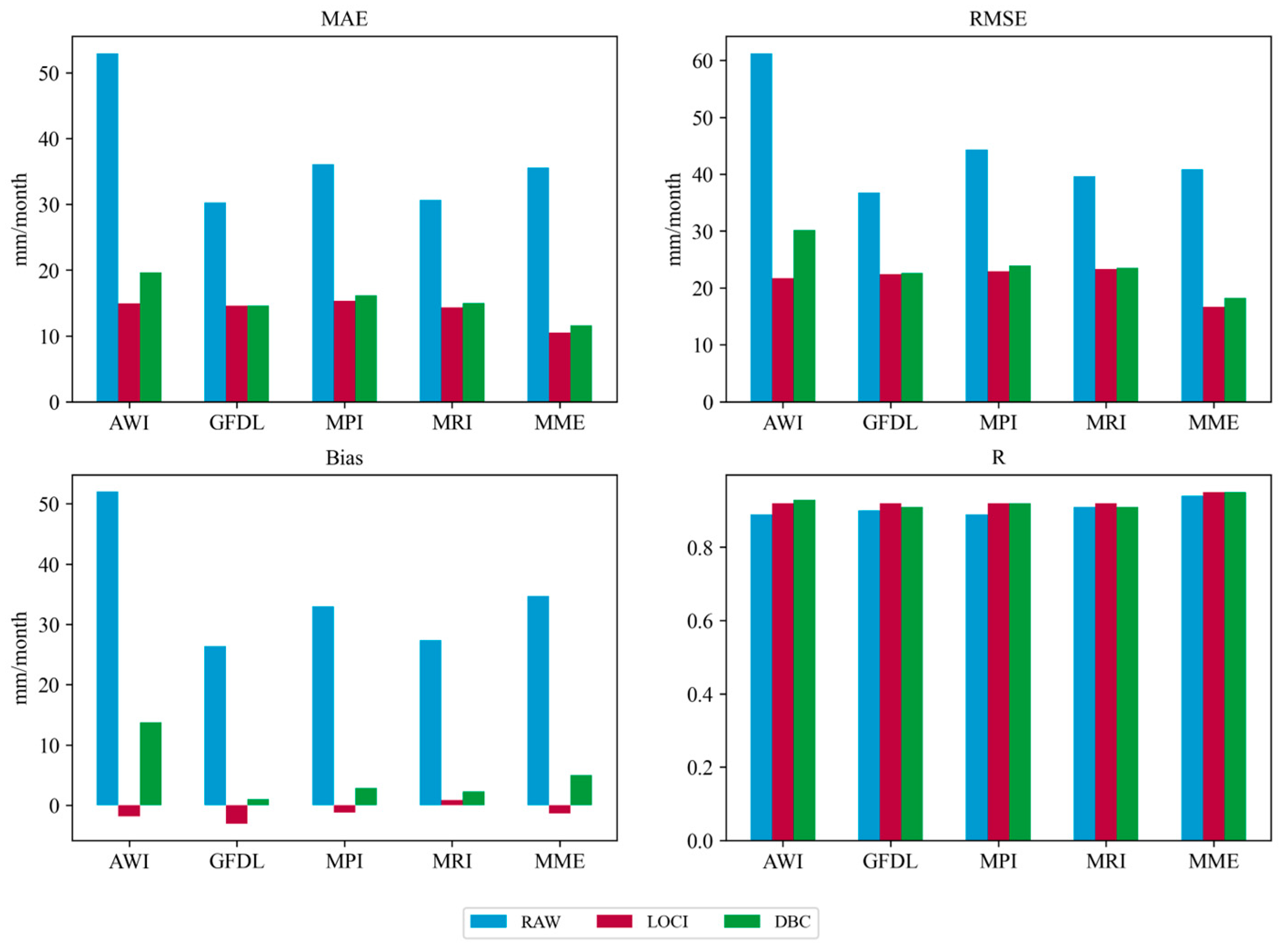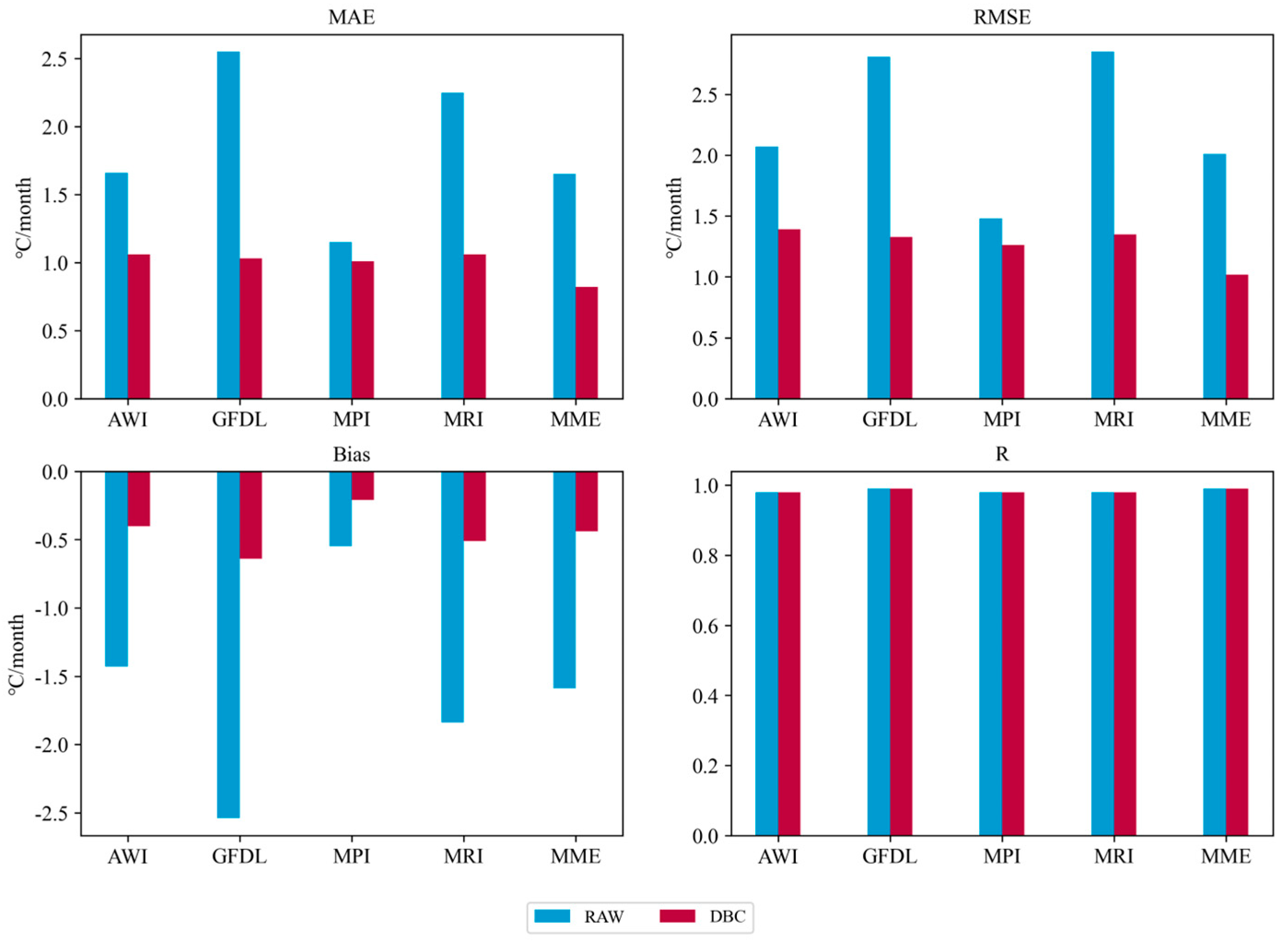 2.3.1. CMIP6 Data Bias Evaluation and Correction