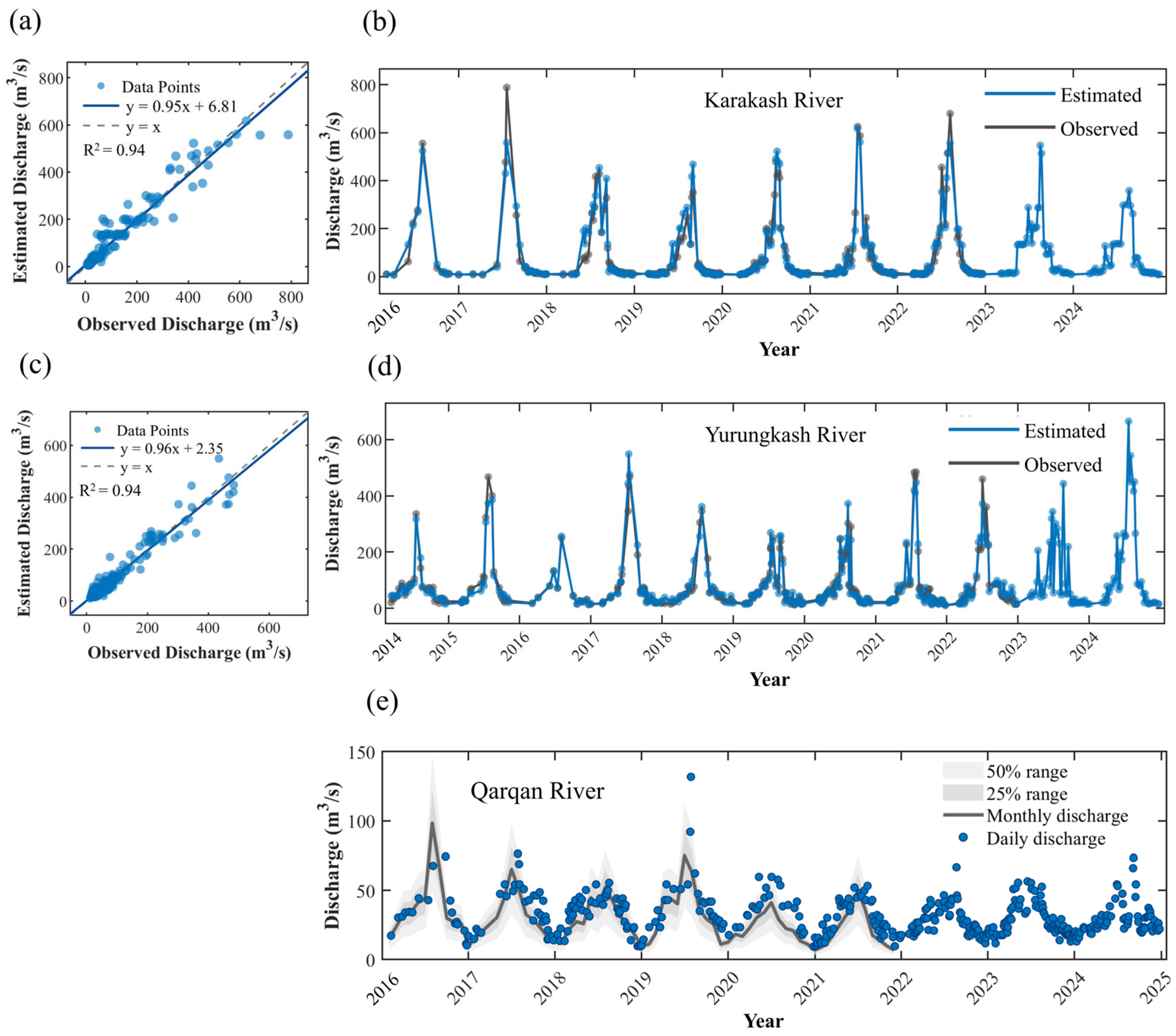 Wei, Z.; Chen, Y.; Fang, G.; Wang, Y.; Li, Y.; Liu, C.; Qian, J. Estimating River Discharge from Remotely Sensed River Widths in Arid Regions of the Northern Slope of Kunlun Mountain. Water 2025, 17, 3105. https://doi.org/10.3390/w17213105