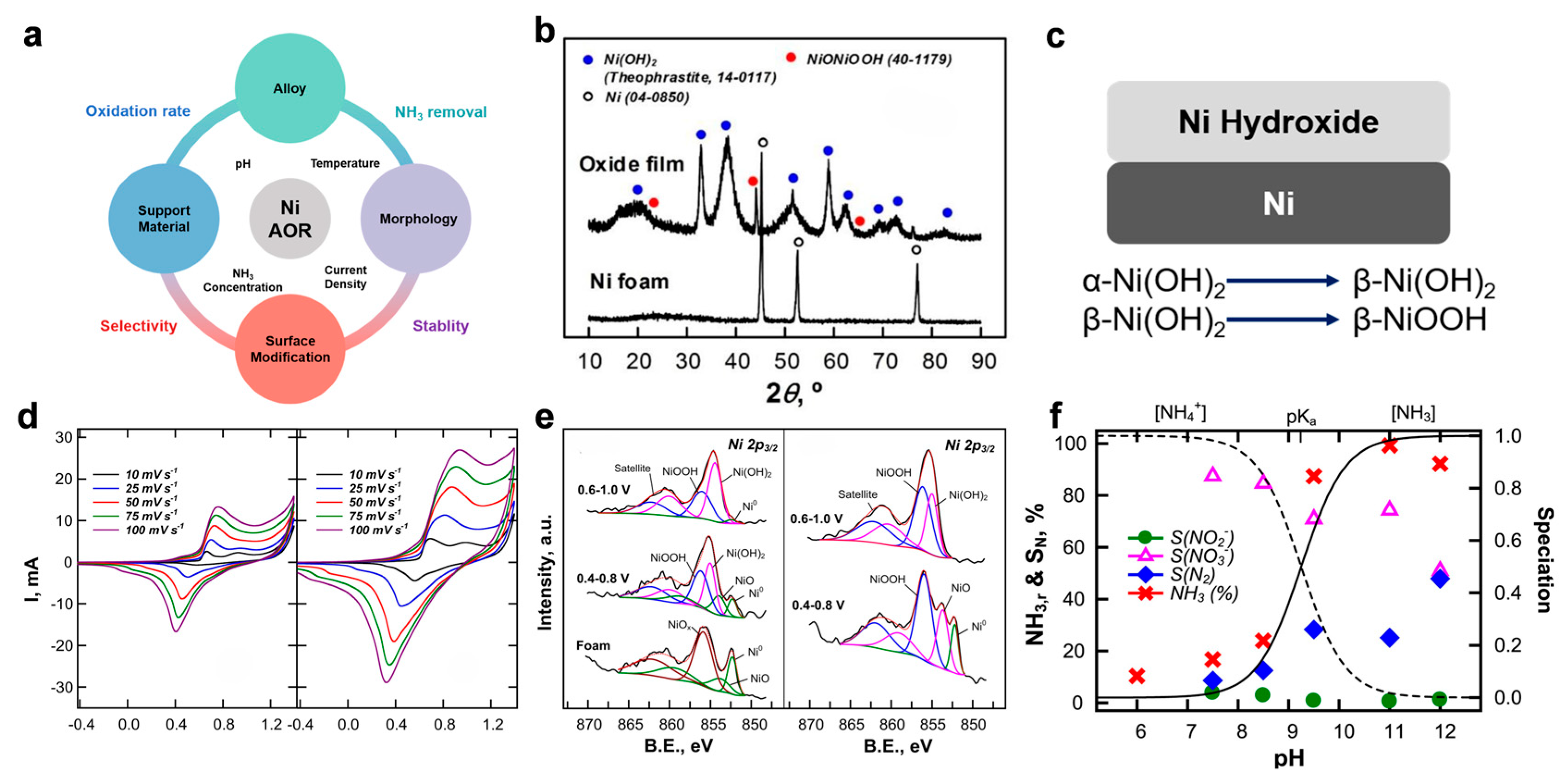 - Wang, R.; Liu, H.; Zhang, K.; Zhang, G.; Lan, H.; Qu, J. Ni(II)/Ni(III) redox couple endows Ni foam-supported Ni2P with excellent capability for direct ammonia oxidation. Chem. Eng. J. 2021, 404, 126795. [Google Scholar] [CrossRef]