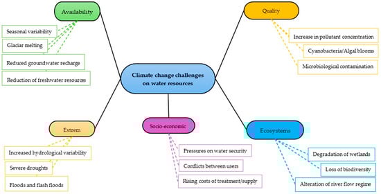 The research highlights how climate change affects water quality, how water systems work, and how long they last, as well as health safety, showing how water resources, public services, human health, and sustainable development goals are all interconnected. Climate change can influence the source, migration, and transformation of pollutants in aquatic environments [50].