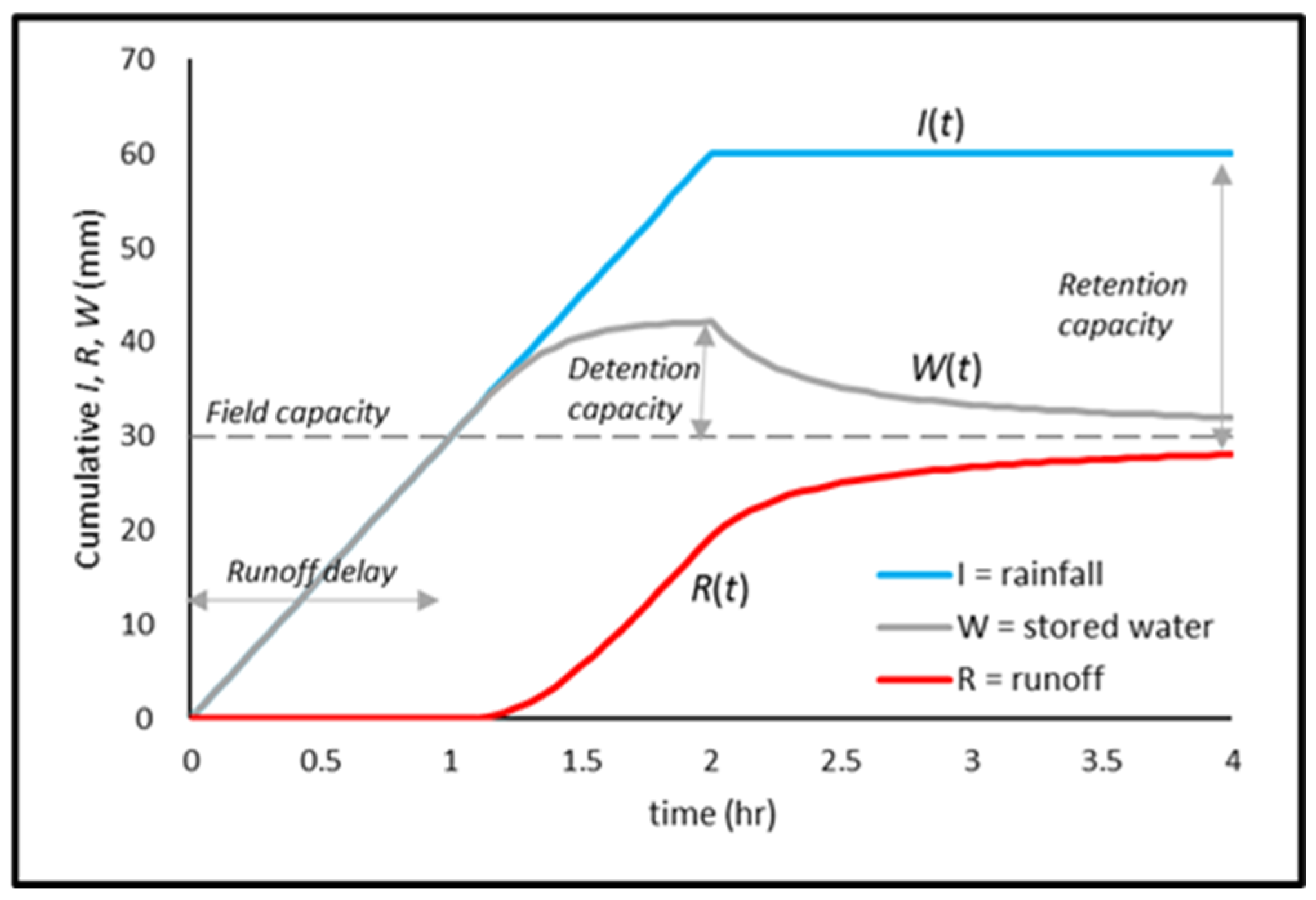 - Liu, W.; Engel, B.A.; Feng, Q. Modelling the hydrological responses of green roofs under different substrate designs and rainfall characteristics using a simple water balance model. J. Hydrol. 2021, 602, 126786. [Google Scholar] [CrossRef]