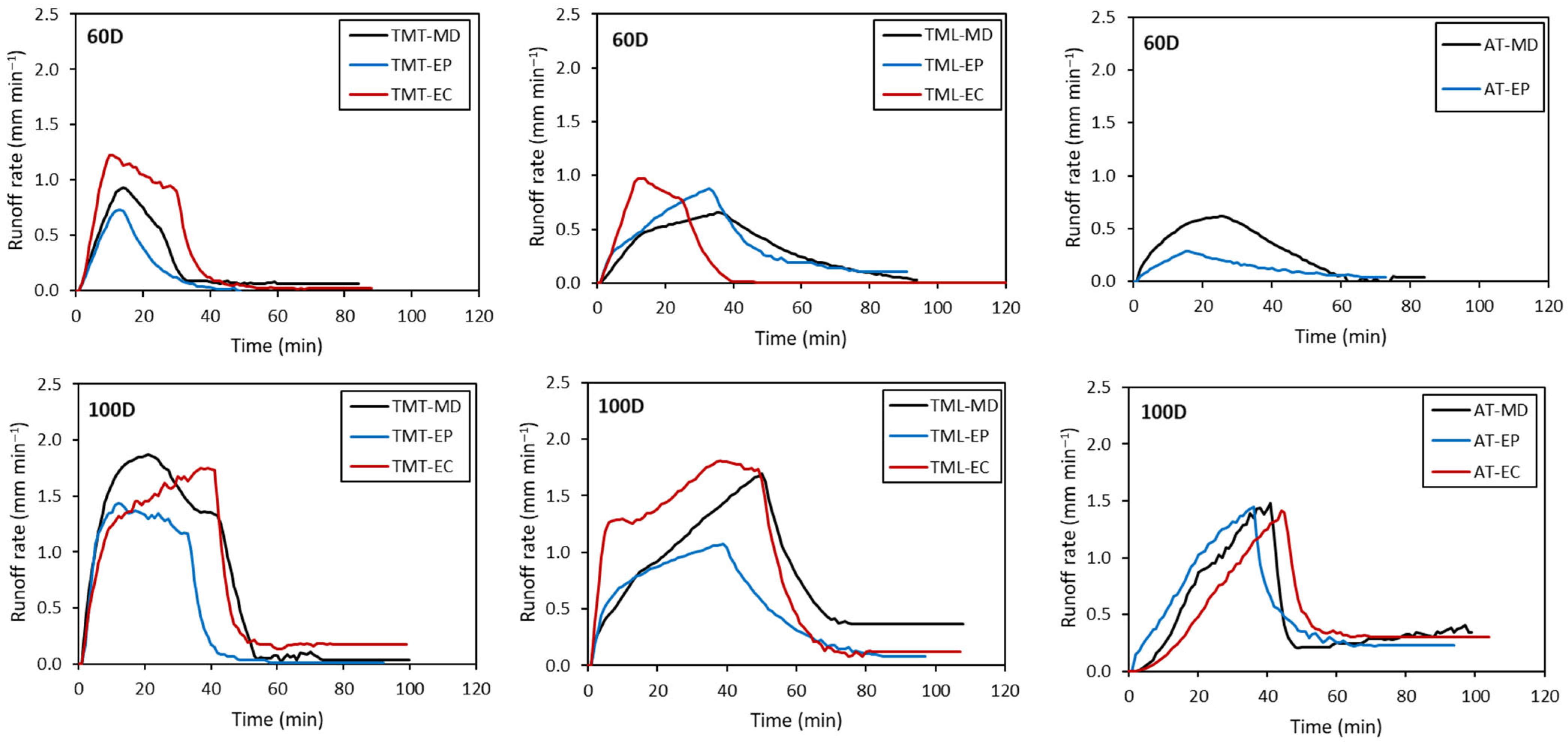 3.3. Influence of Substrate–Drainage Combination on the Hydrological Response
