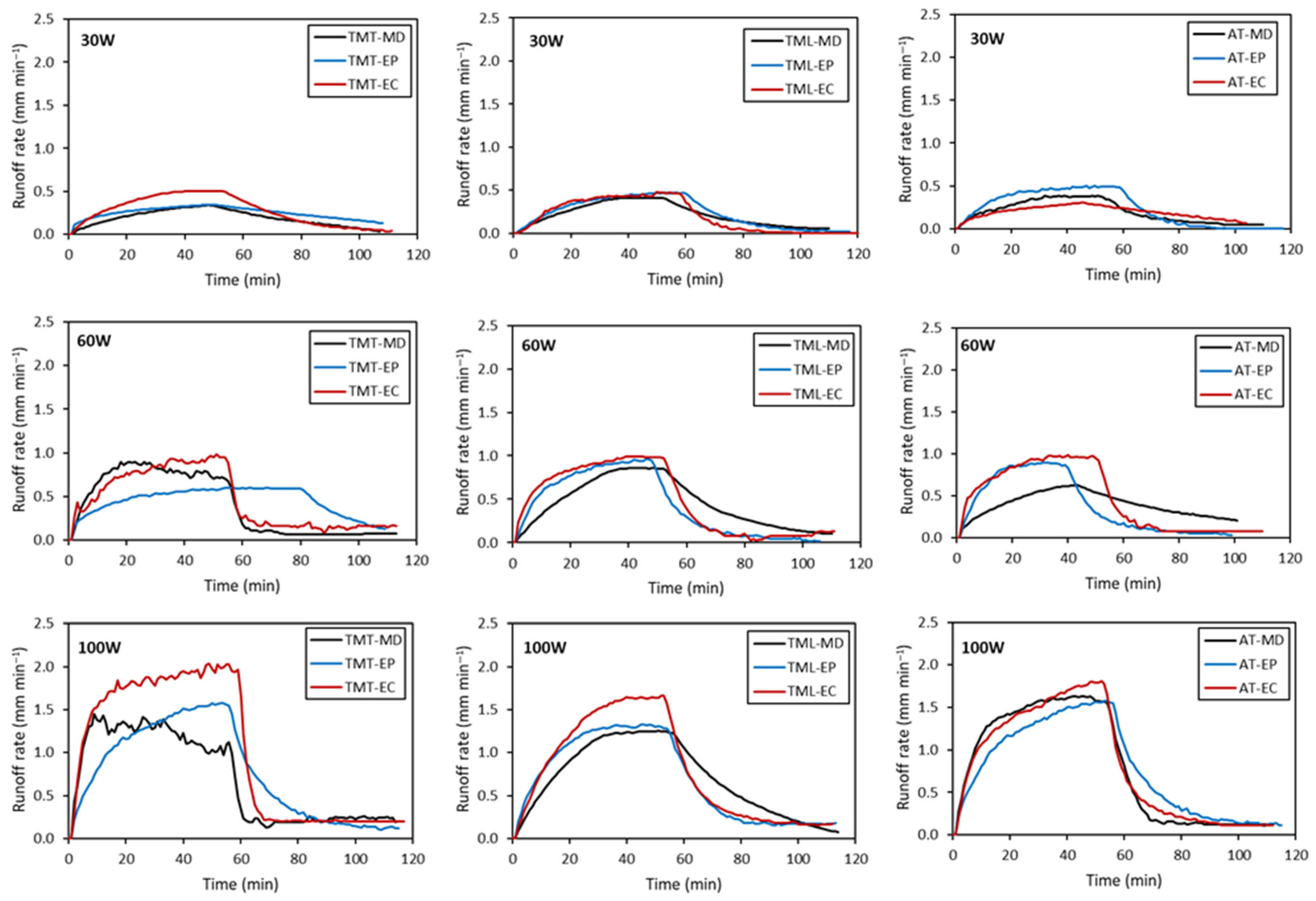 Assessment and Modeling of the Hydrological Response of Extensive Green Roofs Under High-Intensity Simulated Rainfalls