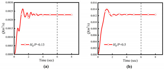 Discharge time series of ATLW: (a) H0/P = 0.13; (b) H0/P = 0.5.