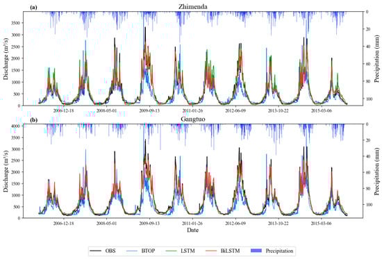 The simulation results for these typical flood events (Figure 8) reveal marked differences in the models’ abilities to reproduce flood hydrographs at Gangtuo Station.