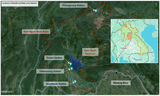 Location of rainfall and water level stations in the Nam Ngum River Basin [10].