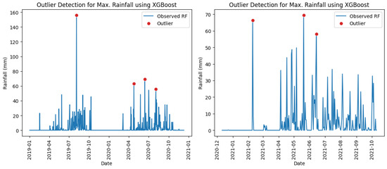 Results of classifications for outlier detection of maximum rainfall using supervised XGBoost model.