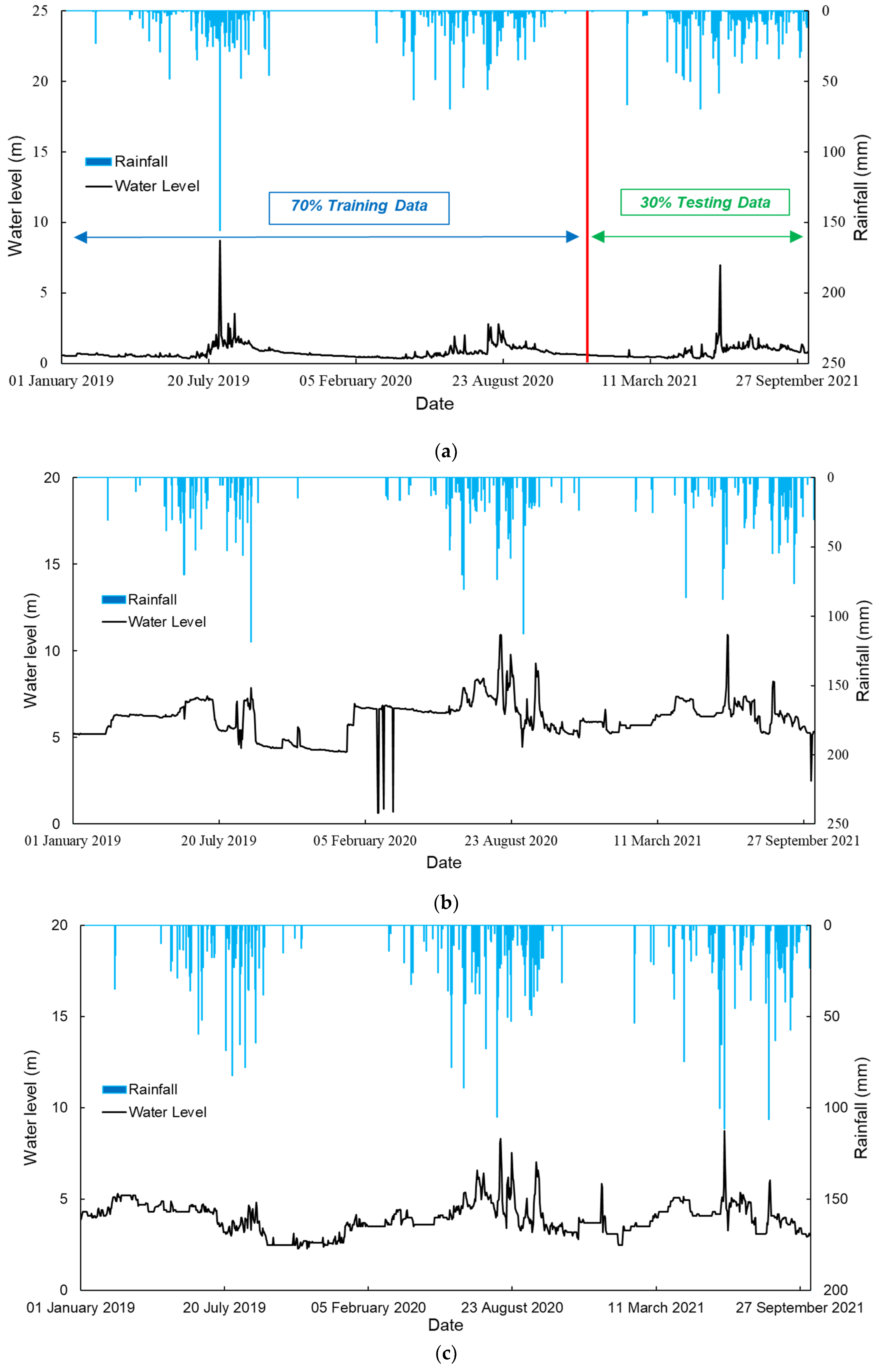 | Rainfall (mm) | Water Level (m) | |||||
