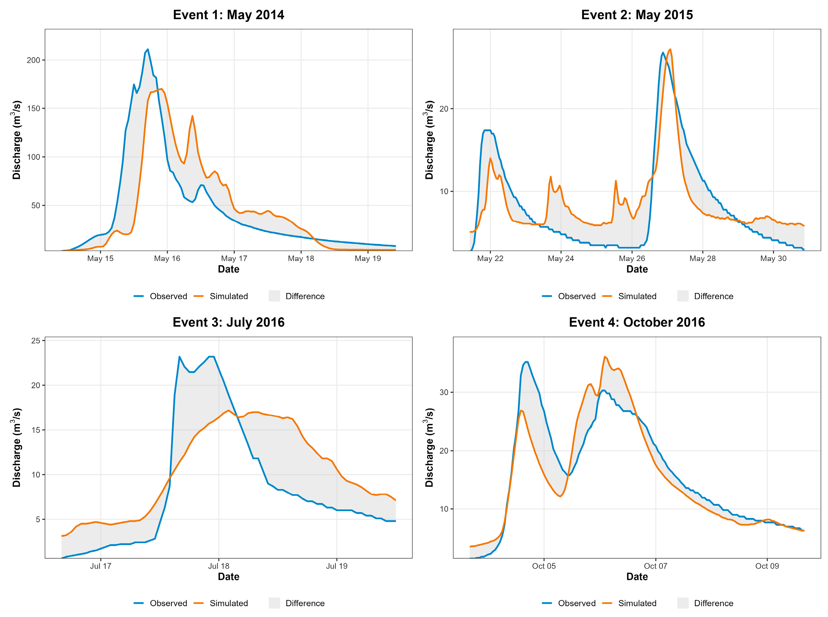 | Event 4: October 2016 | 0.77 | −4.28 | 0.42 | NSE: Very good PBIAS: Very good RSR: Very good |