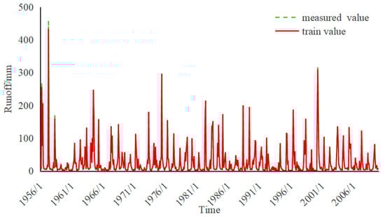 The RMSE values of the model runoff predictions at Yanshan and Baiguishan stations were 4.0877 and 1.2661 mm, respectively, and the corresponding MAPE values were 7.03% and 7.13%. Indeed, the trained model provided a suitable fit to the data and its predictions were only slightly lower than the measured values for a limited number of peak cases.