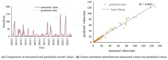 Comparison of measured and predicted runoff values at Yanshan Station.