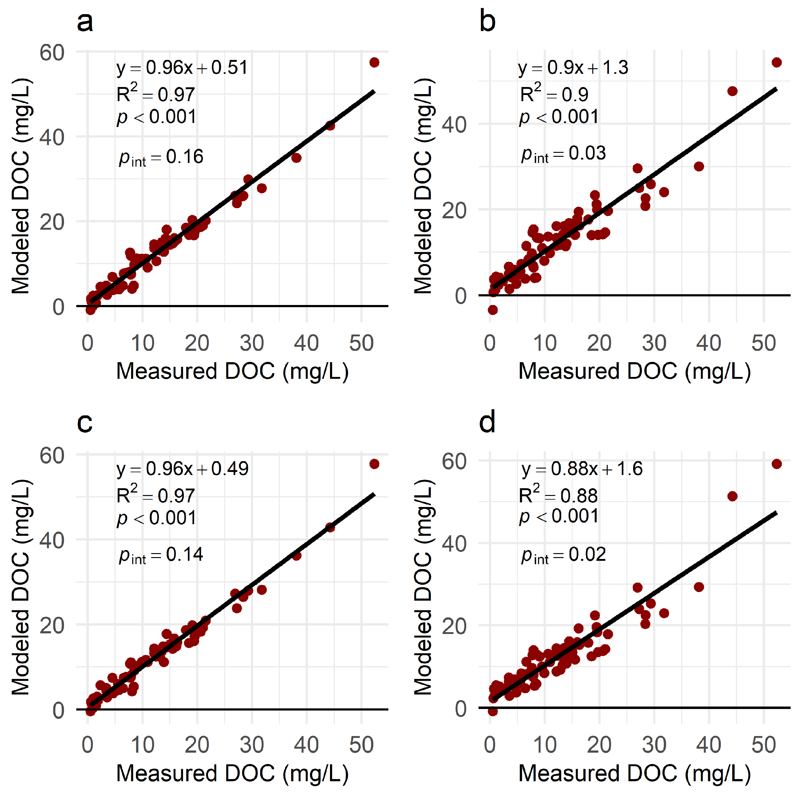 | Absorbance Mixed | 0.0625 × − 123 × S275–295 +7.38 | Site, Date | 363 | 0.97 | 3.8 | 0.89 | 3.3 | 23% |