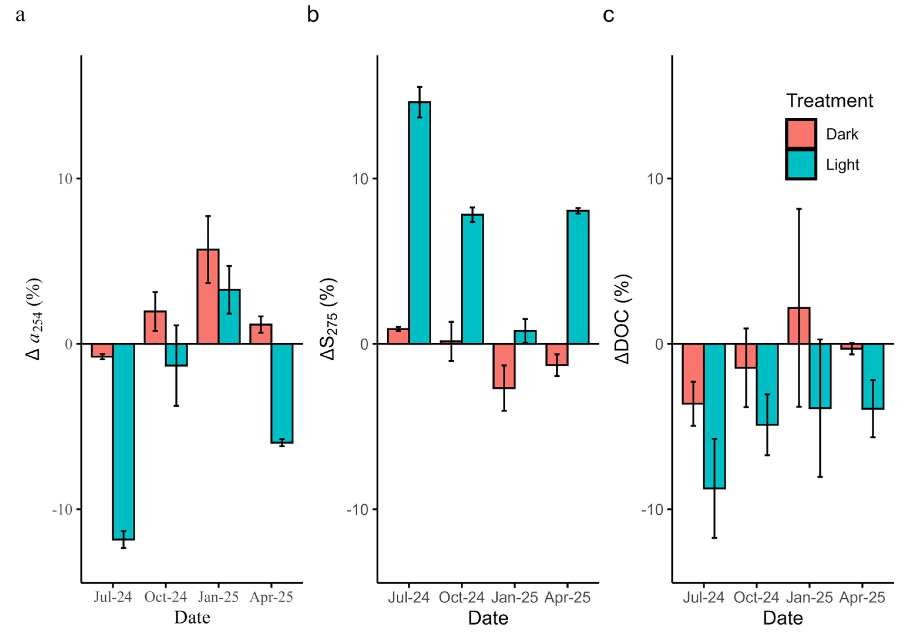 - Cory, R.M.; Kling, G.W. Interactions between Sunlight and Microorganisms Influence Dissolved Organic Matter Degradation along the Aquatic Continuum. Limnol. Oceanogr. Lett. 2018, 3, 102–116. [Google Scholar] [CrossRef]