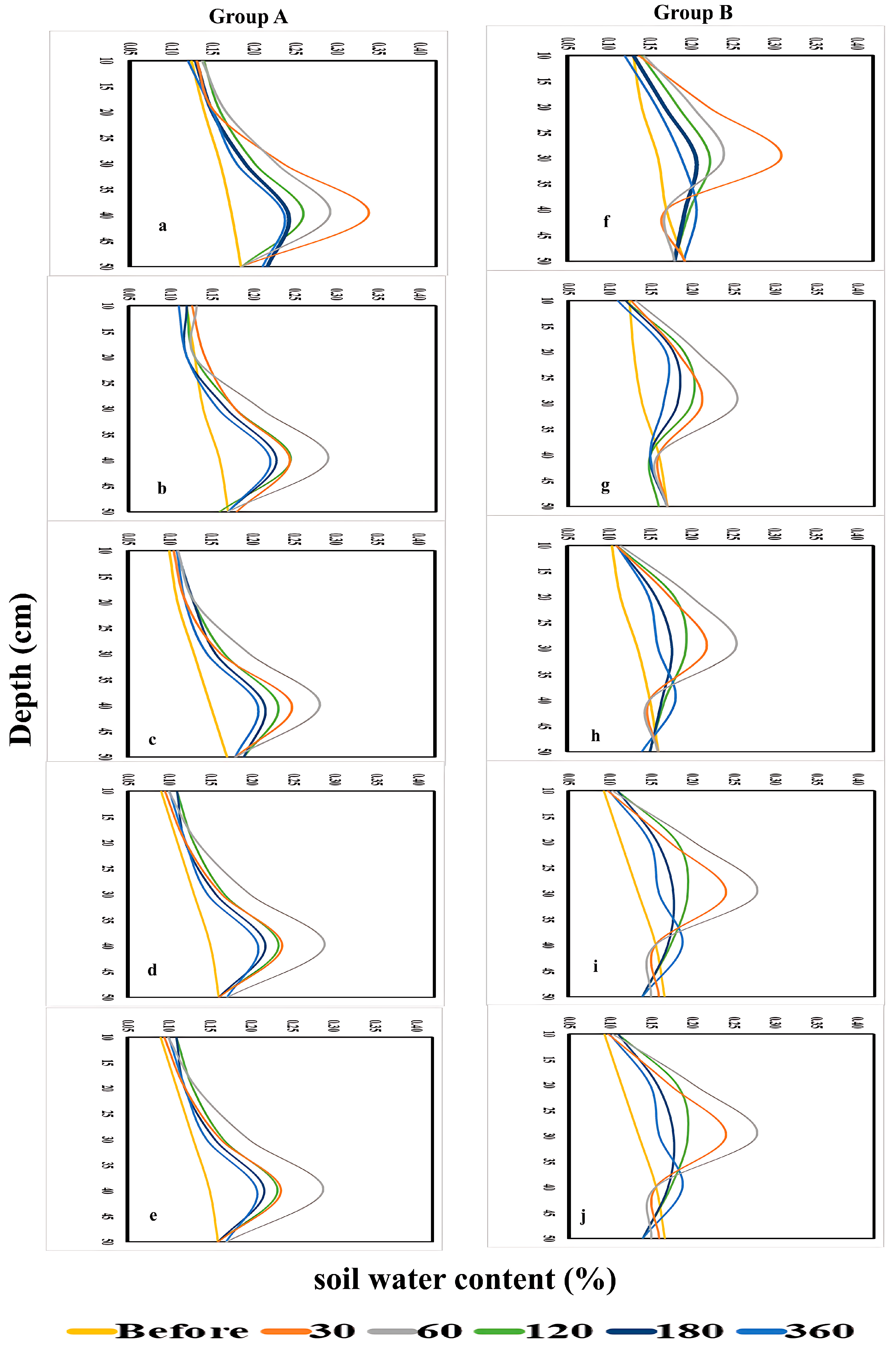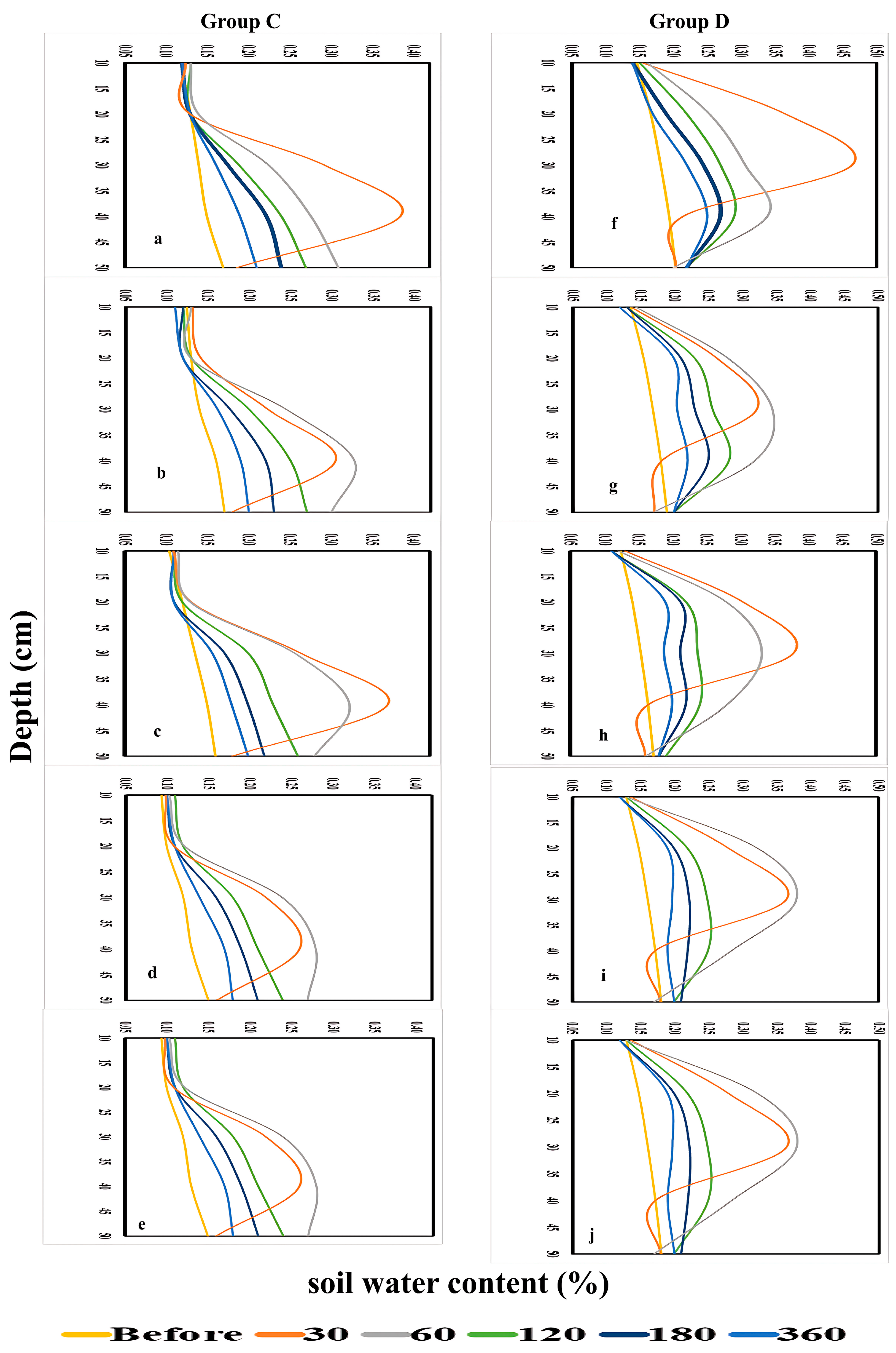 - Shen, Z.; Ren, J.; Wang, Z.; Cui, W. Effects of initial water content and irrigation frequency on soil-water dynamics under subsurface drip irrigation. J. Food Agric. Environ. 2011, 9, 666–671. [Google Scholar]