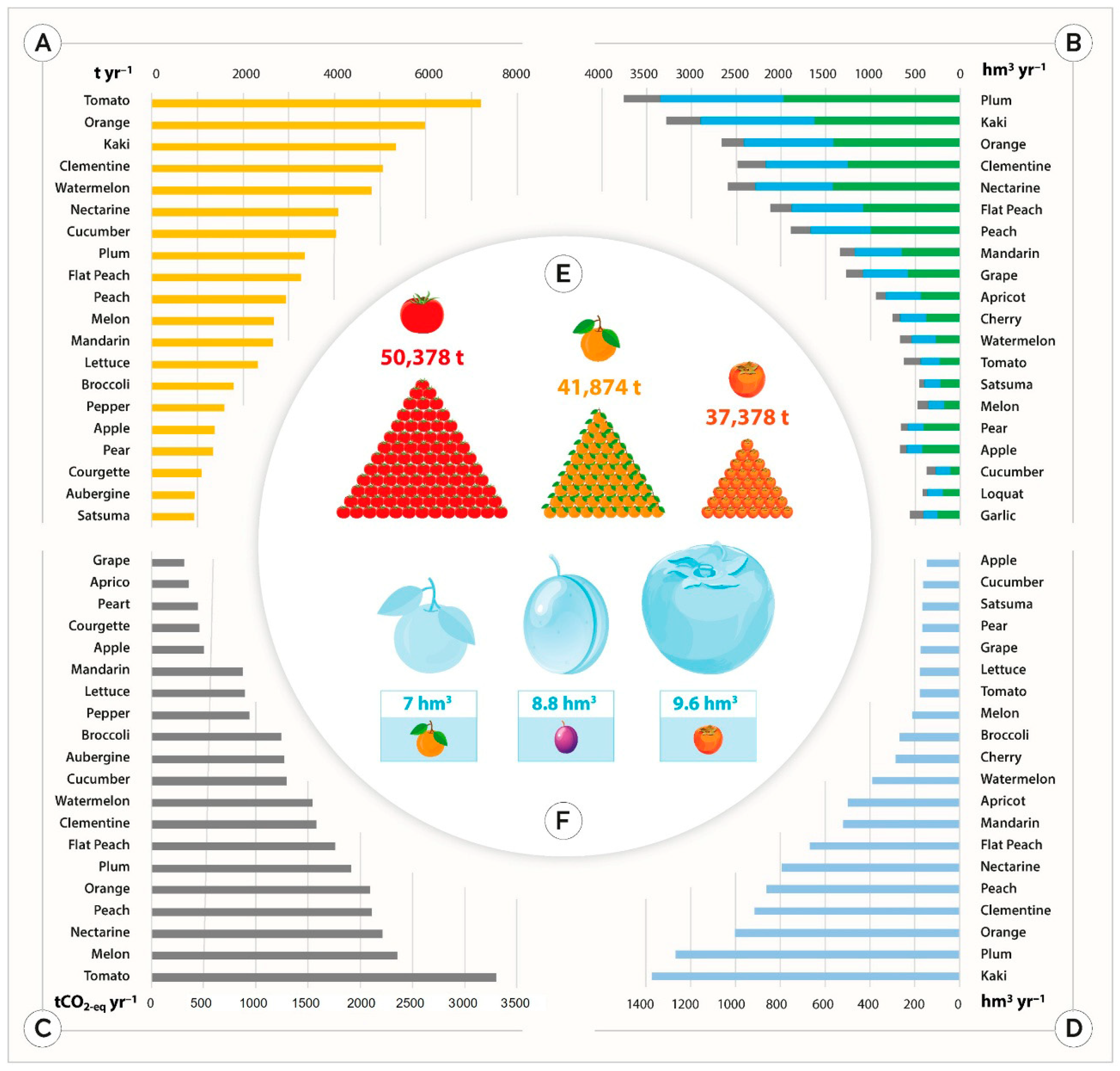 - Martí-Talavera, J.; Martínez-Valderrama, J.; Olcina, J.; Guirado, E.; Cintas, J.; Maestre, F.T. Data on Fruit and Vegetables Discards and Their Water and Carbon Footprint in Spain (2018–2014). 2025. Available online: https://figshare.com/articles/dataset/Data_on_Fruit_and_Vegetables_Discards_and_Their_Water_and_Carbon_Footprint_in_Spain_2018-2014_/30187786?file=58157383 (accessed on 5 May 2025). [CrossRef]