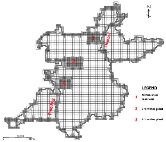The values of m and k for the riverbed were selected considering data from previous studies and articles. The drilling logs from piezometers installed along the rivers to monitor their evolution were also considered. Mihuaishun, third and fourth water plant sources are part of the projects implemented to restore Beijing’s overexploited groundwater resources. Mihuaishun (Miyun District, Huairou District and Shunyi District) reservoir used to be recharge by local reclaimed water, treated by wetland, and water from the South-to-North Water Transfer Project (SNWTP) [37,38]. The third and fourth water plant sources are subject to very strict operating rules for optimized use of water resources. Details for the calculation and estimation of groundwater recharge and discharge elements are presented in Table 4.