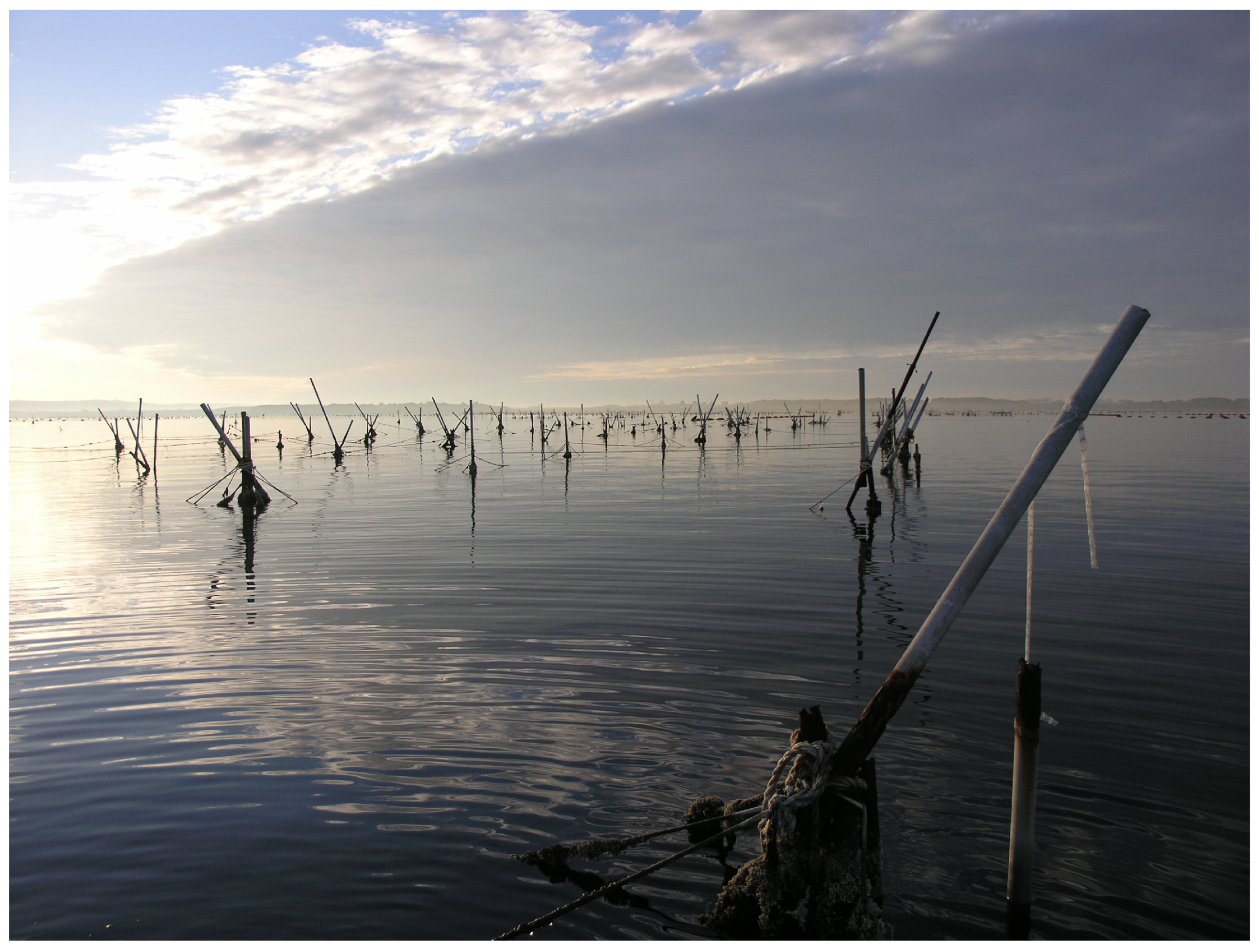 Figure 2 refers, by way of example, to a practical case of possible interaction between jets or jet-like flows and an array of piles belonging to a mussel farming facility.