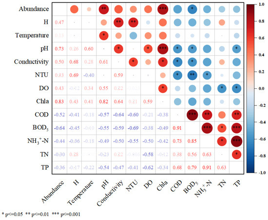 Correlation between microplastics abundance and physicochemical parameters in the Feiyun River basin.