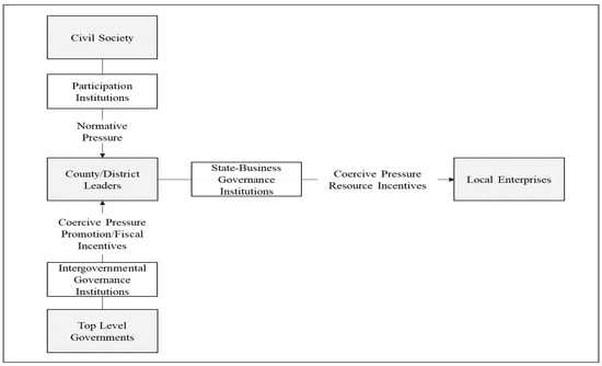 Therefore, the intergovernmental governance institutions enacted by top level governments and societal public expectations mediated through the civil society participation mechanisms constitute critical structural elements that county- and district-level governments face. These institutions exert coercive pressure, motivational incentives, and normative pressure, thereby guiding and constraining the direction and intensity of governance actions taken by local leaders and ultimately influencing environmental governance outcomes.