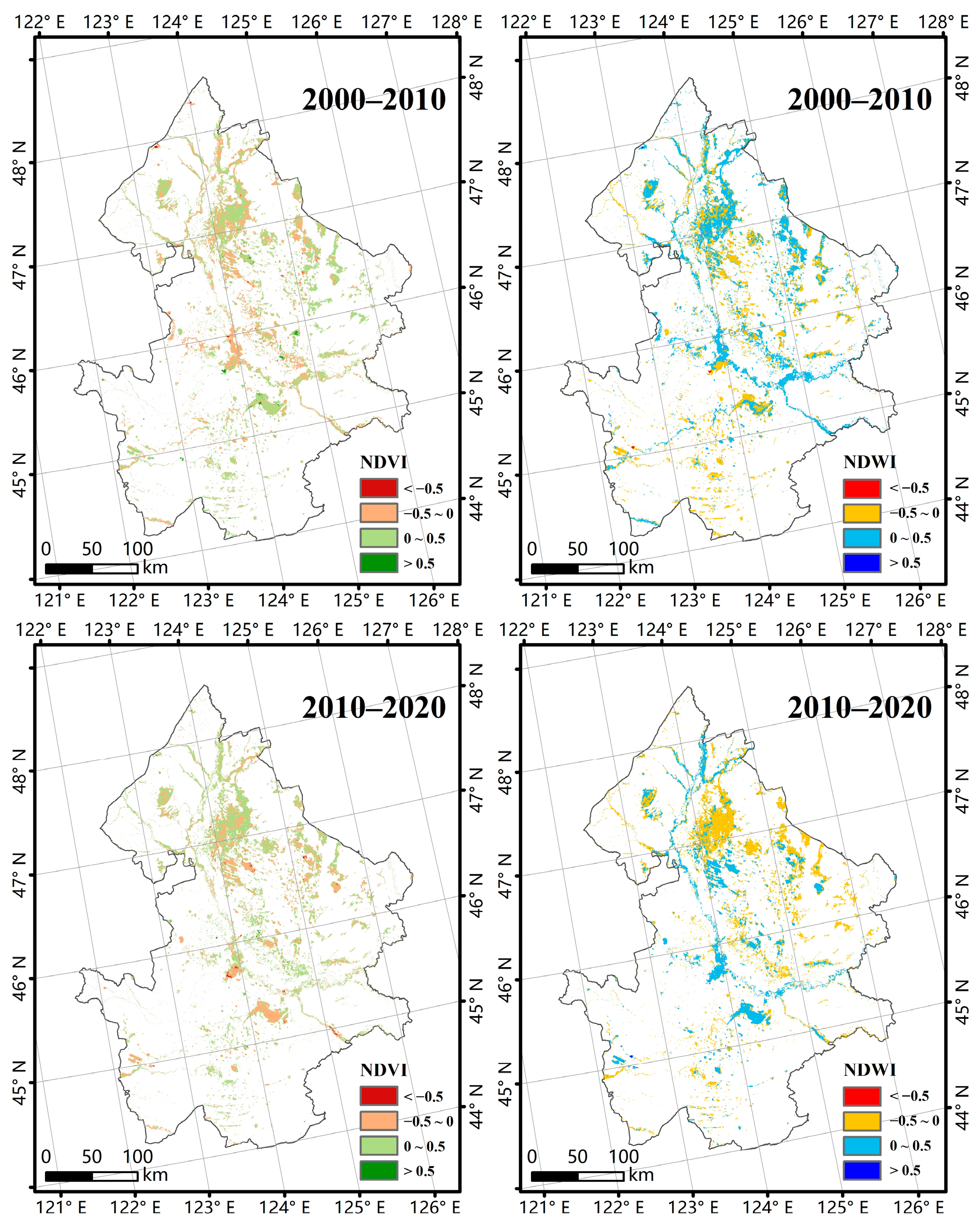 3.1. Ecological Variations in Wetlands from 2000 to 2020