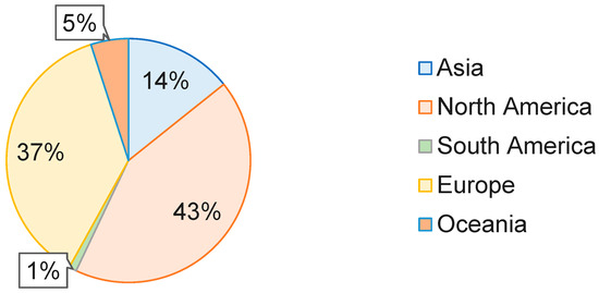 Meteorological and hydrodynamic parameters are of core importance in the distribution and persistence of FIOs at bathing sites. They affect the contamination transport, dilution, and survival rates, directly impacting water quality and public health. Among them, rainfall, tidal movements, wave action, wind dynamics, sunlight exposure, and salinity levels are the most significant, as highlighted in previous studies. The geographical classification of the studies can be seen in Figure 3.