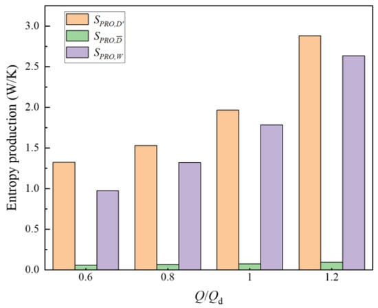 Entropy generation proportion distribution in the USSPAT under different flow rates.