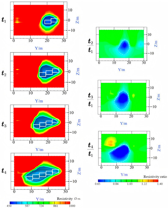 39]. Building upon prior work, we introduce a time-lapse resistivity ratio method tailored to characterize the staged evolution of inclined water-conducting pathways. This approach aims to enhance the resolution, localization, and interpretability of monitoring data under complex geologic and hydrologic conditions.