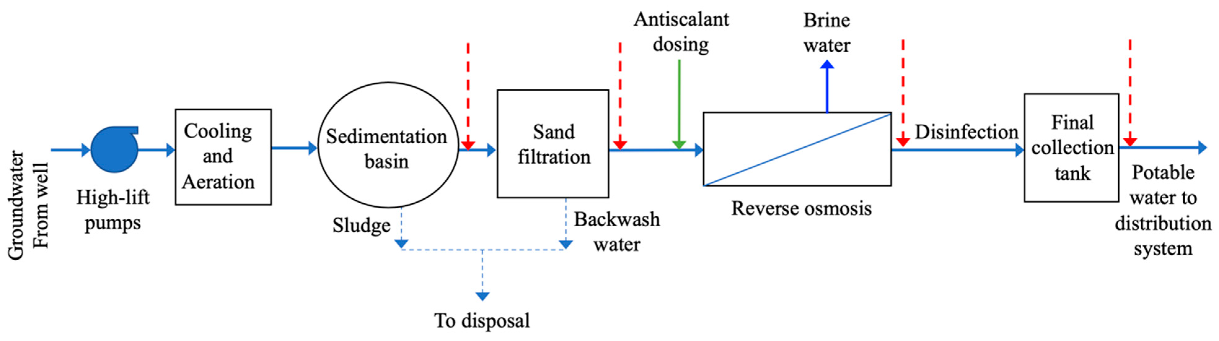 - Sun, J.; Chen, S.; Dong, Y.; Wang, J.; Nie, Y. Removal of Hardness and Silicon by Precipitation from Reverse Osmosis Influent: Process Optimization and Economic Analysis. J. Water Process Eng. 2023, 55, 104147. [Google Scholar] [CrossRef]