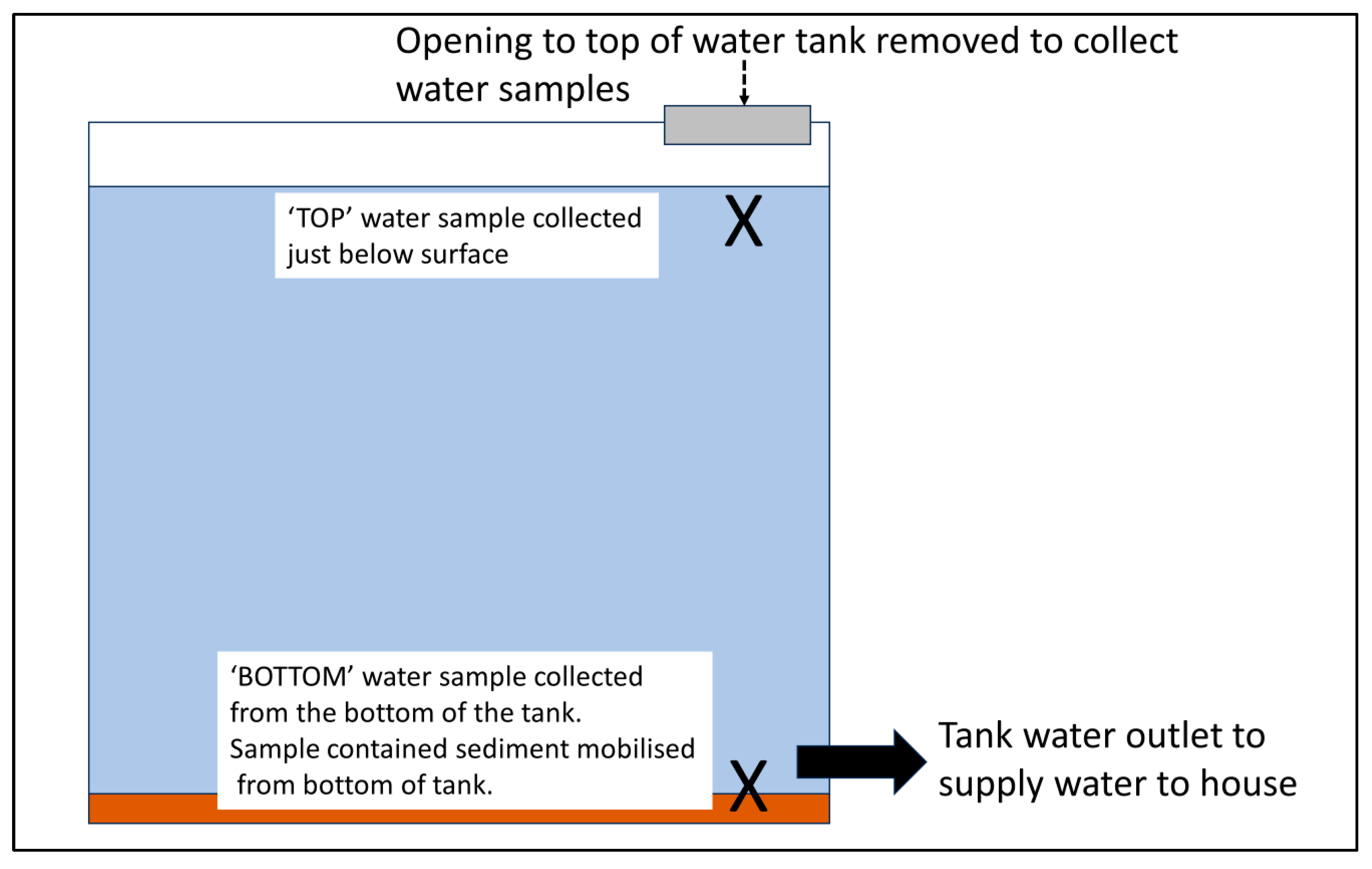 - Wright, I.A.; Christie, A.; Gilpin, A.-M. Water Quality of Roof-Harvested Drinking Water Tanks in a Rural Area near a Gold and Copper Mine: Potential Health Risk from a Layer of Metal-Enriched Water and Sediment. Water 2024, 16, 773. [Google Scholar] [CrossRef]