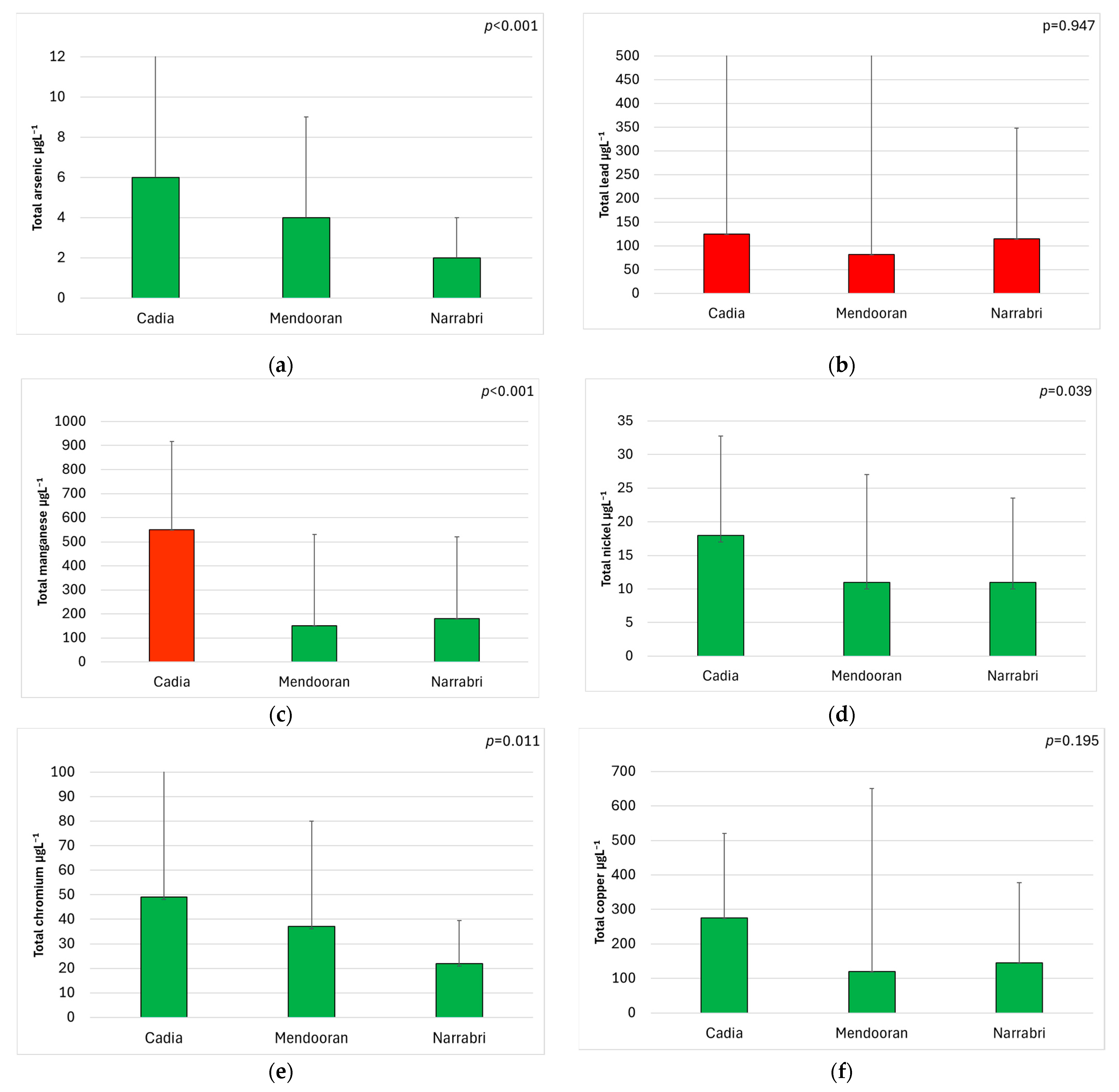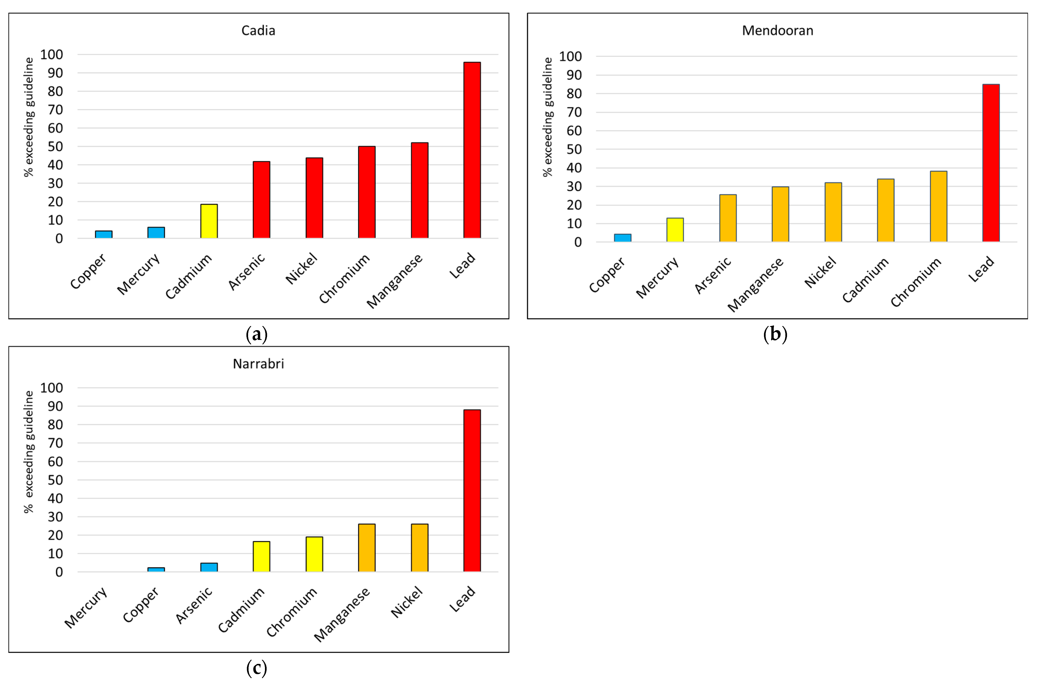 - NSW Environment Protection Authority. An Investigation into Metals in Sediments from Domestic Rainwater Tanks Around the Newmont Gold Mine in Cadia. 2023. Available online: https://www.epa.nsw.gov.au/sites/default/files/23p4477-tank-sediment-metals-at-cadia.pdf (accessed on 25 September 2025).