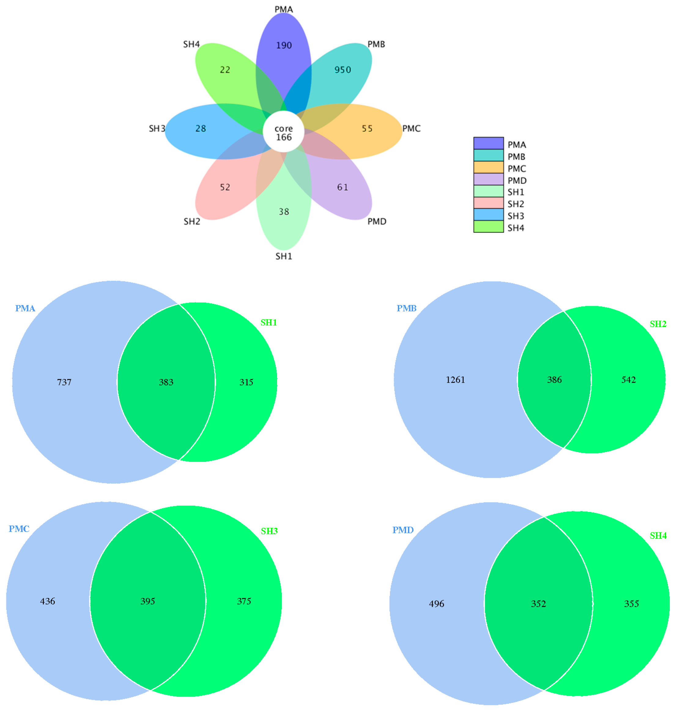 3.3.2. Analysis of OTU Petal Diagram and Wayne Diagram